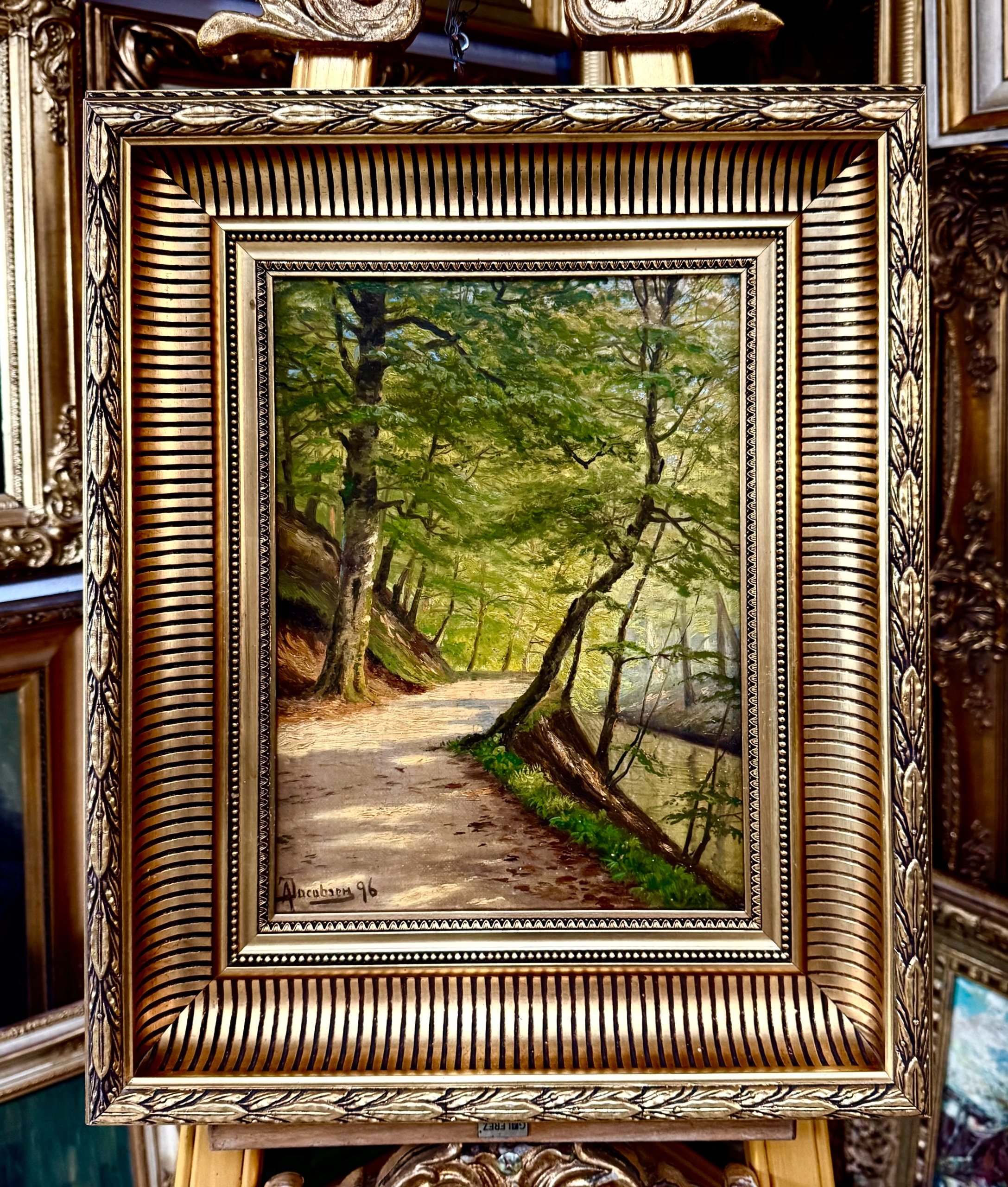 Август Якобсен (1868-1955) Лісовий захід 1896 року дорогоцінна стара картина