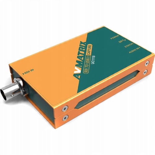 Компактний пристрій відеозапису UC1118 SDI до USB 3.1 Type-C від AVMATRIX дозволяє записувати або транслювати SDI через USB 3.1. Завдяки входу 3G-SDI BNC цей пристрій захоплення підтримує роздільність відео до 1920 x 1080p60. Автоматично визначає формат вхідного відео та передає його через USB 3.1 зі швидкістю до 200 МБ/с. Він підтримує захоплення відео UVC і UAC, а також вихід відео YUV. Щодо аудіосистеми, він має лінійний стереовхід 3,5 мм і підтримує 2-канальний, 16-бітний, 48 кГц PCM-аудіо.