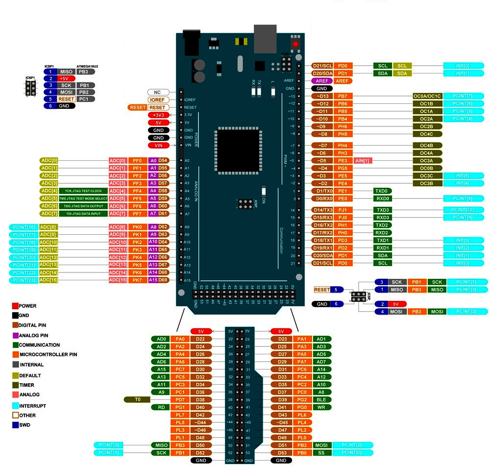 - Мікроконтролер AVR ATmega 2560 @16 МГц