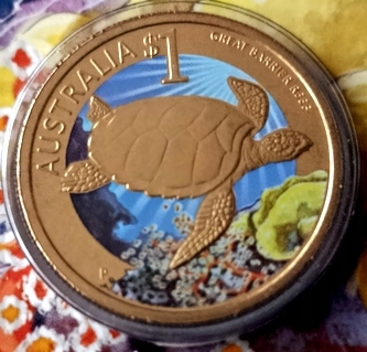 АВСТРАЛІЯ - $1 2010, черепаха - Великий Бар'єрний риф, UNC, колір, папка!