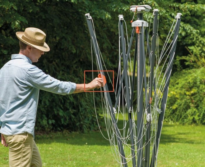 регулювання висоти = можливість встановити висоту сушарки, залежно від моделі, висота становить приблизно. 140 см до приблизно. 190 см.