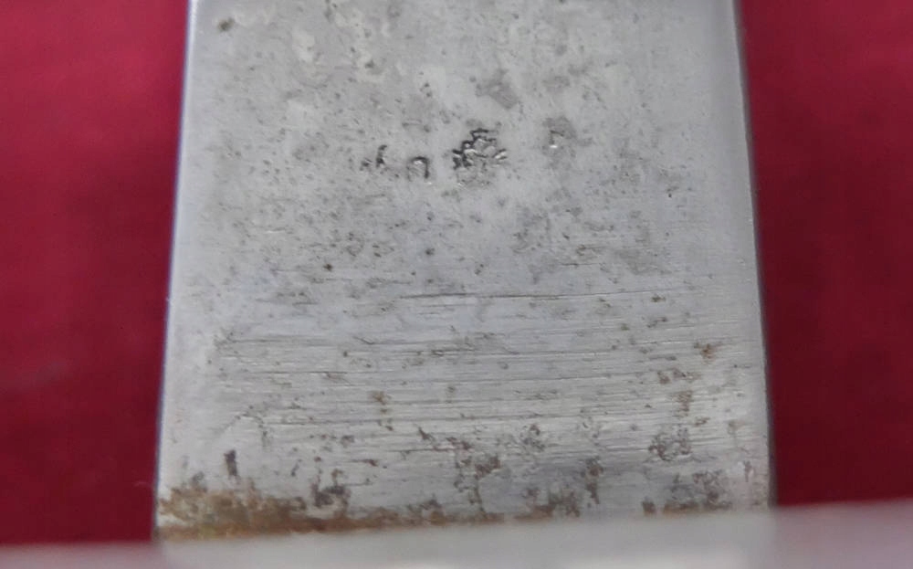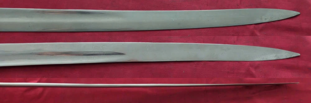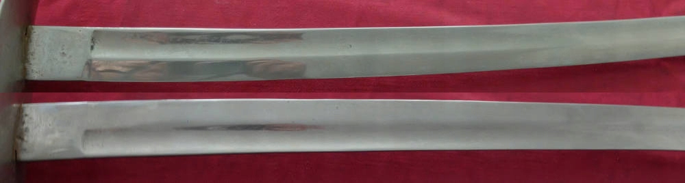 Копія, яку видно на фото, добре збереглася. На порозі леза є маленькі підписи, але вони не дуже чіткі. Стрижень ручки дерев'яний, оригінальний, збереглося обплетення, але ящірка відсутня. Шабля хромована.