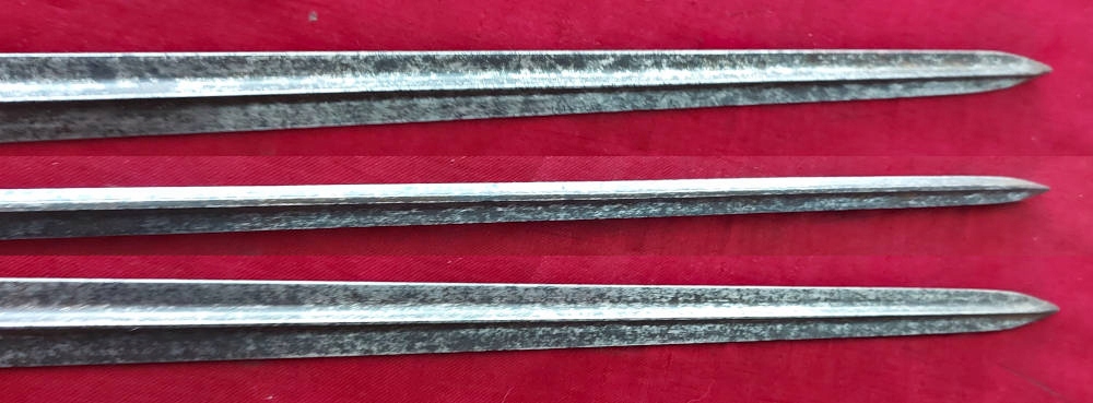 Копія, видна на доданих фотографіях. Чудово збереглися. Це не було заземленим і заточеним. Він покритий делікатним покриттям. Підписи видно на плечі та лезі. Кільце рухається. На кільці бракує гвинта.