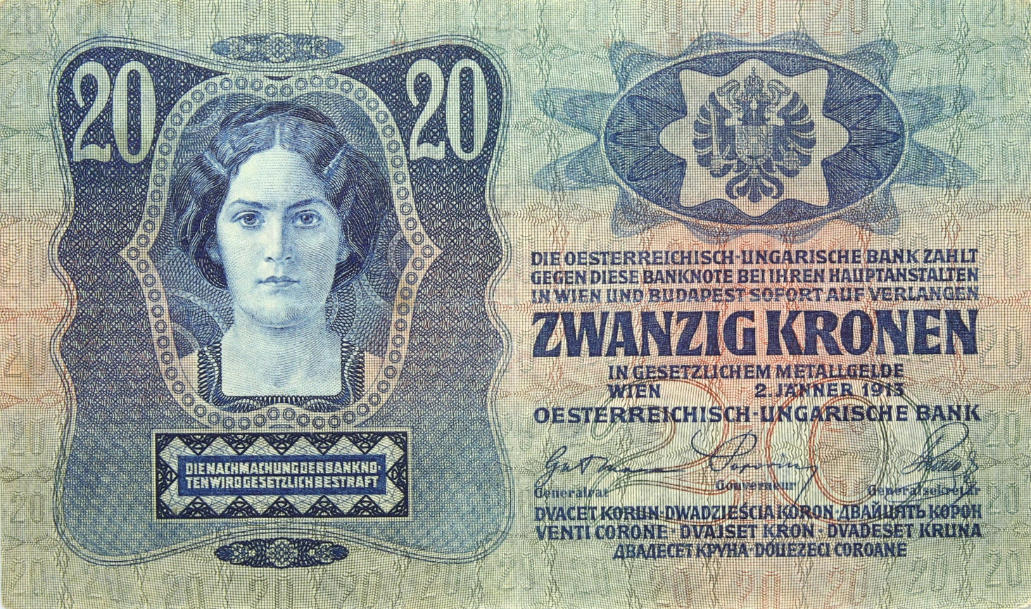 Австрія - БАНКНОТА - 20 крон 1913 р. - БЕЗ ДРУКУ