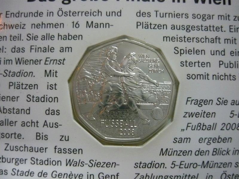 Австрія 5 євро 2008 FUSSBALL DEFENDER МОНЕТА