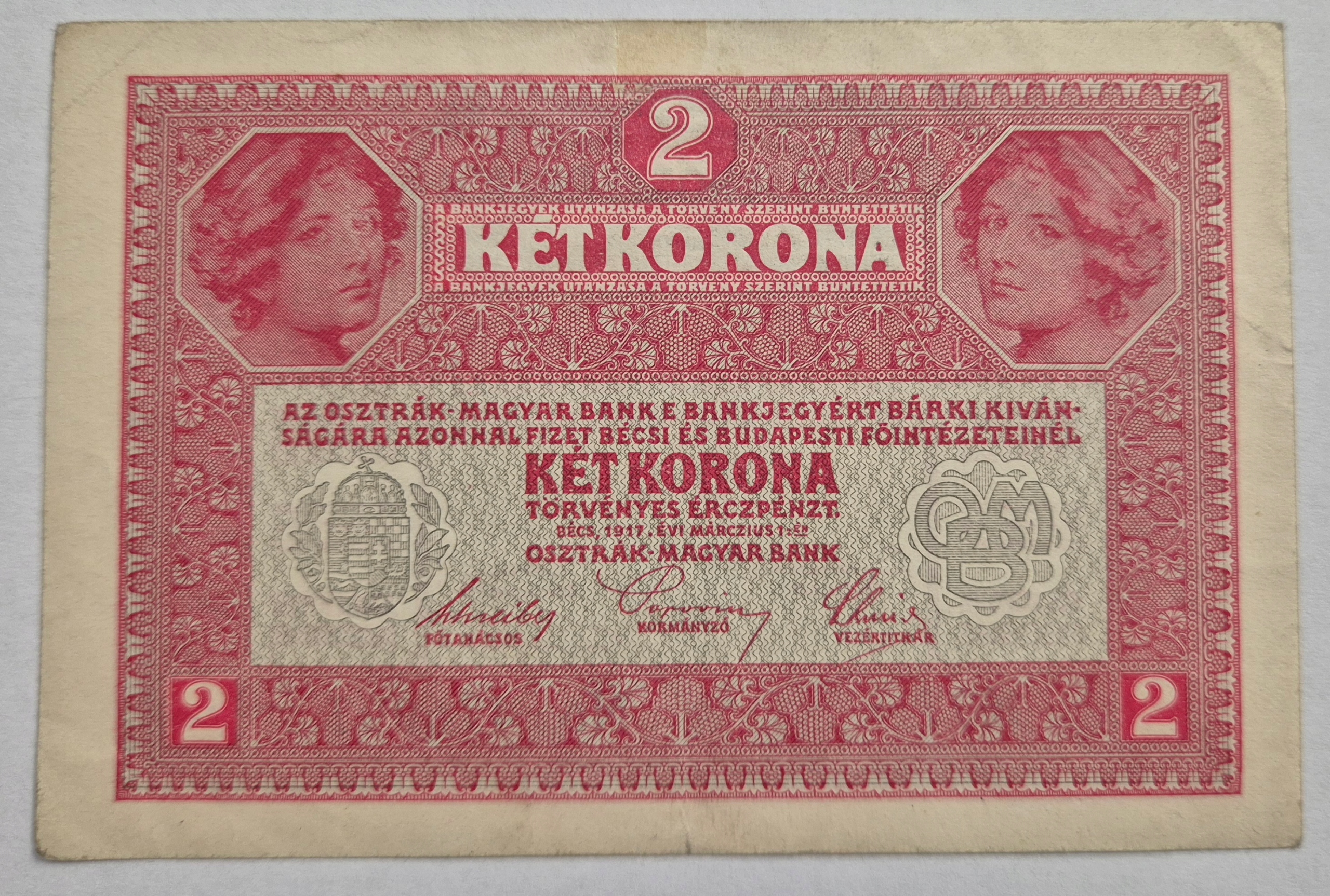 Банкнота 2 крони 1917 року. Красиві чіткі деталі, декоративні портрети та багаті прикраси. Нумерація: 1677 - 476097. Класичний предмет для колекції!