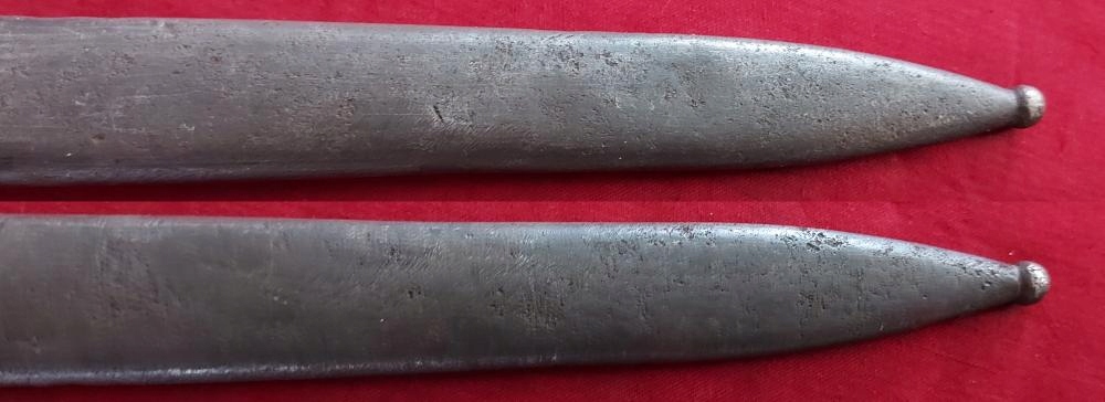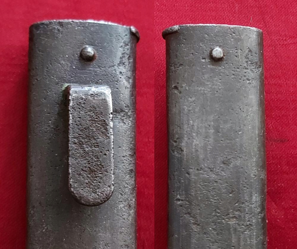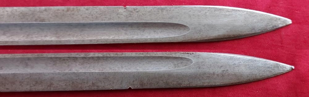 Копію можна побачити на фото. Дуже гарно збереглася. Лезо не заточене, незаточене, на ньому помітні сліди заводської фрези. На лезі є невеликий скол, видно на фото. На поріжку клинка маркування OEWG - виробник STEYR, а з іншого боку - емблема - орел CK. Накладки на ручки дерев'яні, оригінальні. Багнетний замок працює.