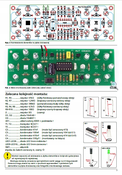 В набір входить друкована плата, набір компонентів і документація (потрібна пайка).