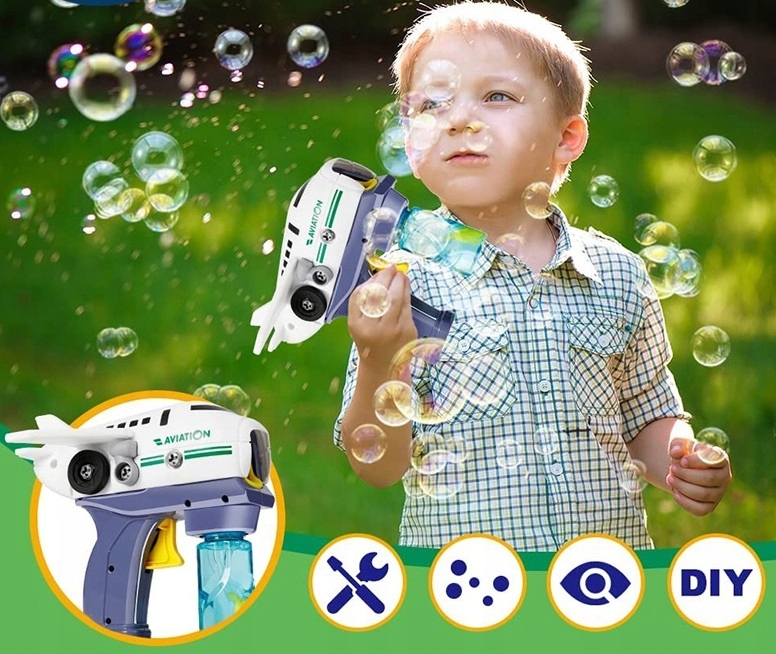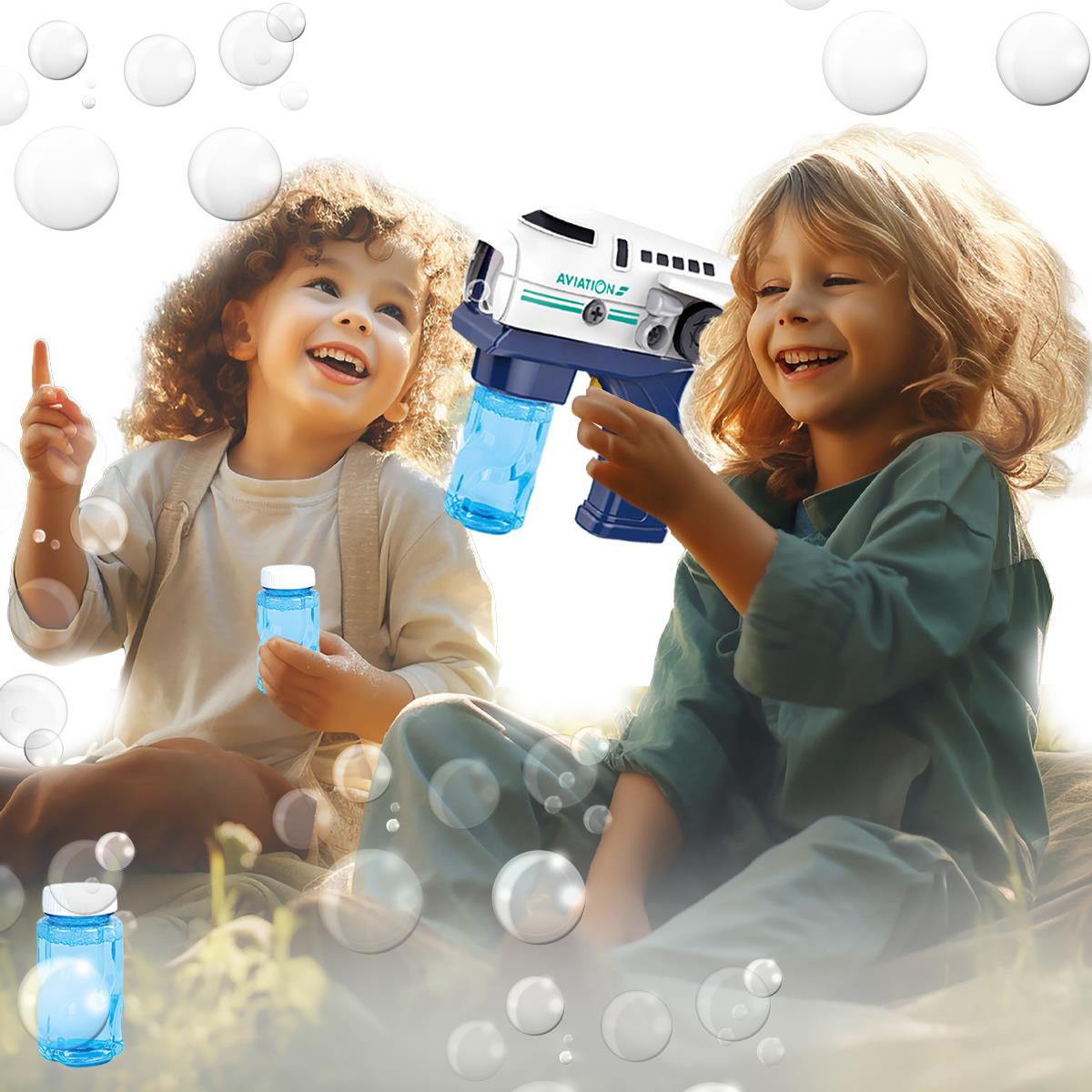 ✔️Дивовижний ЛІТАК-пістолет для виробництва мильних бульбашок, при натисканні на який спусковий гачок випускає багато мерехтливих бульбашок.