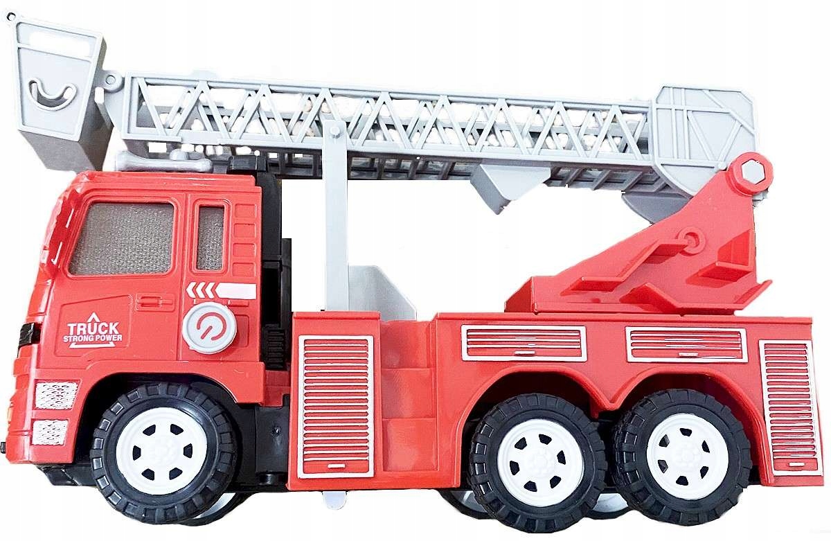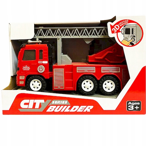 Автомобіль пожежної частини має червоний кузов із білим та срібні елементи. Має 6 пластикових коліс, які допоможуть пересуватися по різних поверхнях. Крім того, автомобіль оснащений рухомою драбиною, яку можна повертати та переміщати.