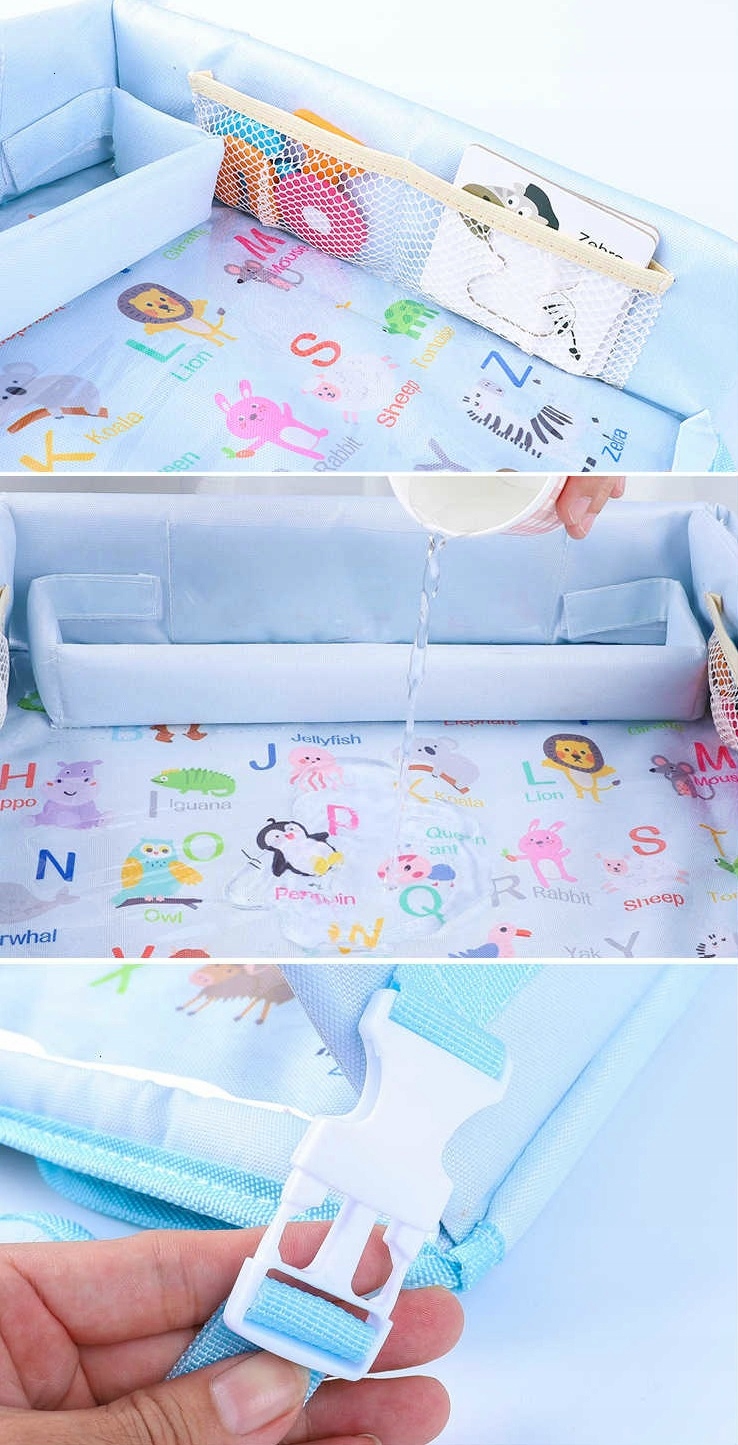 У розкладеному вигляді він дає багато місця для гри дитині, але його можна скласти, і він займає стільки ж місця, скільки стільниця, оскільки боки складаються.