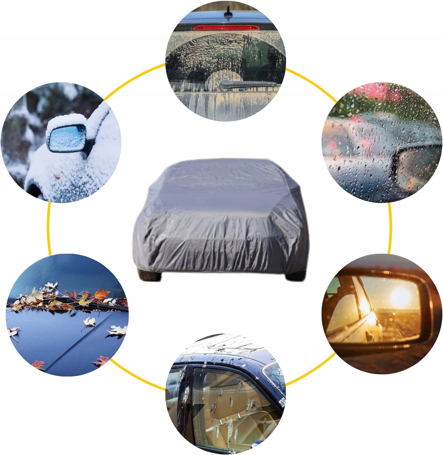 👍👍👍【Водонепроникний і підходить для будь-яких погодних умов. погода】найкраще захищає від весняного дощу, літнього сонця, осіннього вітру та листя, а також зимового льоду та снігу, запобігає прогляданню автомобіля, захищає фарбу та скло автомобіля від дощу, снігу, граду, вітру та інших пошкоджень. Срібна поверхня має кращий захист від відблисків та ультрафіолетових променів, ніж чорні матеріали, ефективно знижуючи температуру в приміщенні під час спекотної літньої погоди.