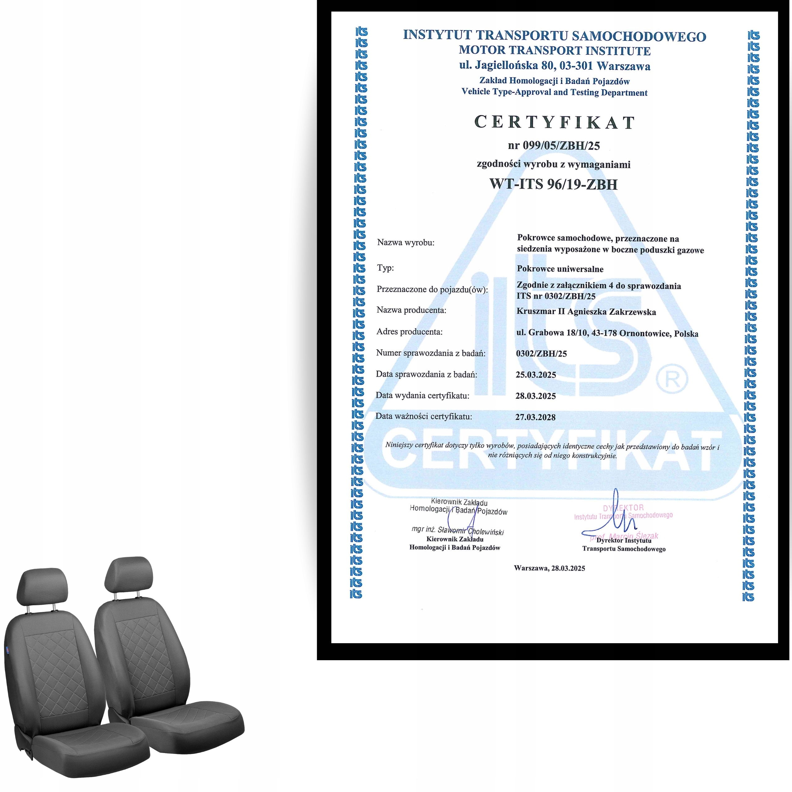⛨ Сертифікат безпеки ITS – відповідність AIRBAG