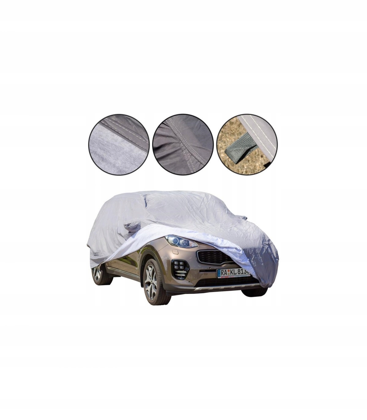 Зовнішня частина брезенту виготовлена з високоякісного відбиваючого шару, який захищає ваш автомобіль від ультрафіолетового випромінювання сонця та покращує видимість вашого автомобіля навіть уночі. Внутрішня частина брезенту виготовлена з міцного та водонепроникного ПВХ матеріалу товщиною 5 мм, що запобігає розриву брезенту та протіканню води. Автомобільний брезент невибагливий в установці завдяки надійному кріпленню з 4-точковою системою кріплення.