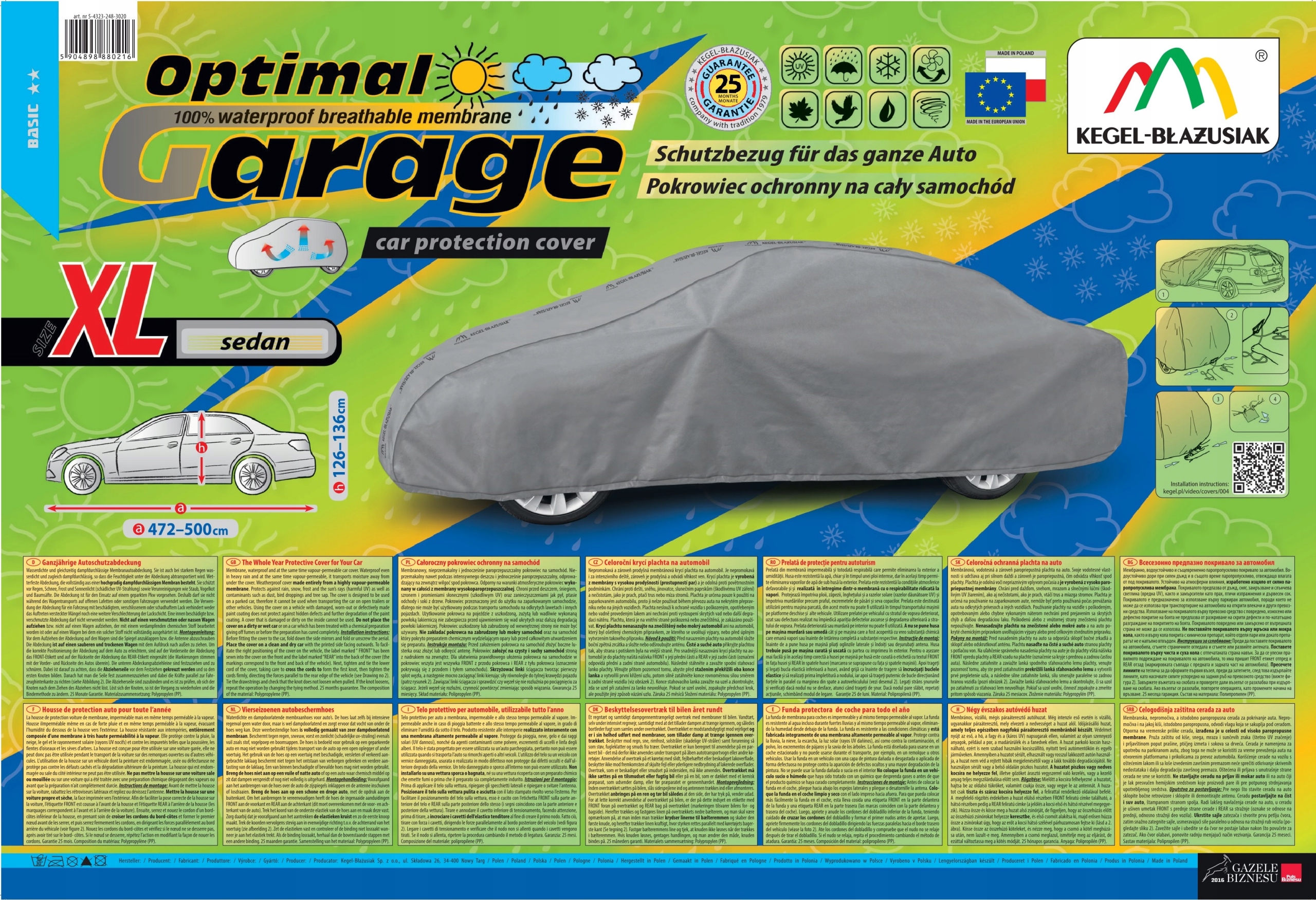 Хороші брезентові чохли повинні не тільки захищати автомобіль від опадів, забруднення та сонячного світла, але й бути безпечними. Це наші брезентові чохли Kegel-Błażusiak. Наші фахівці проводять тривалі випробування брезентових чохлів. Випробовується ефективність захисту автомобіля брезентом від погодних умов, а також його водостійкість, видалення водяної пари з-під покриття, безпека покриття для лакофарбового покриття автомобіля та ефективність кріплення покриття до автомобіля в нормальних і екстремальних погодних умовах. Наша компанія Kegel-Błażusiak виробляє лише продукти з позитивними довгостроковими тестами.