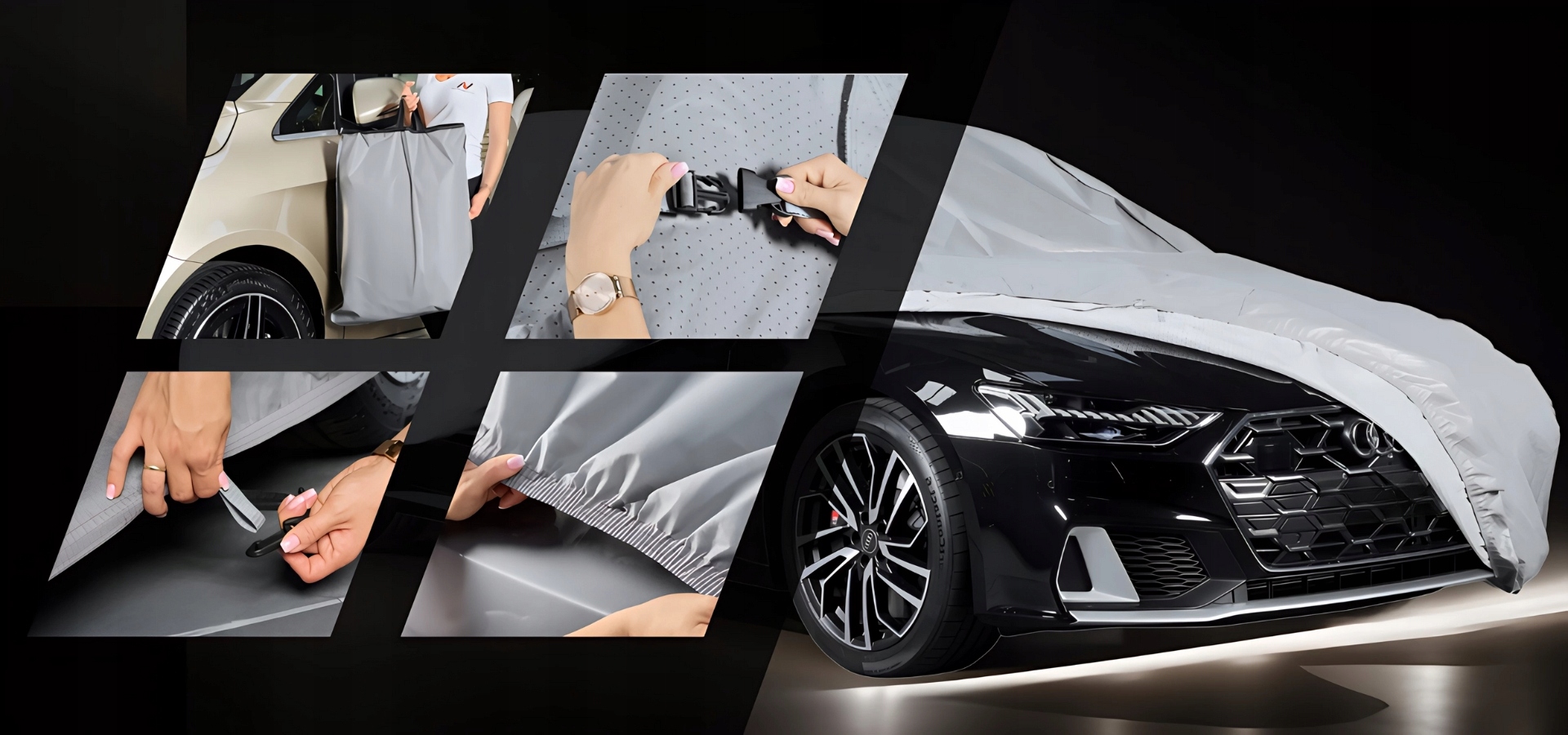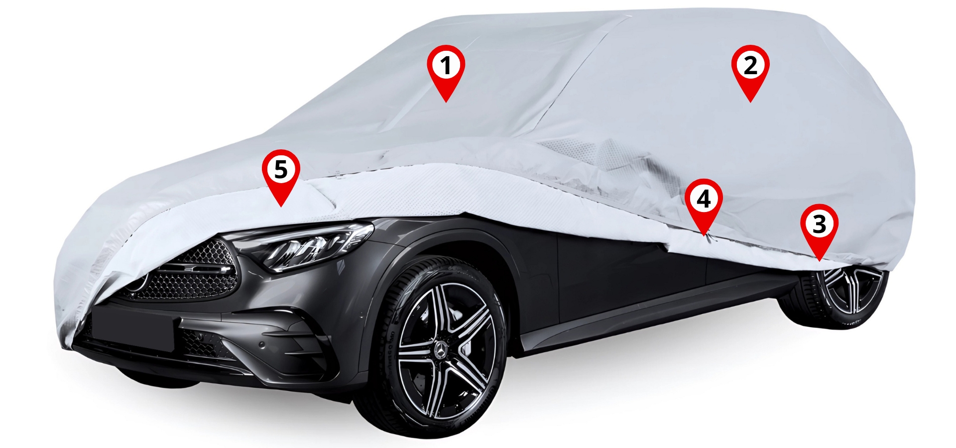 - УФ-захист: Матеріал чохла захищає автомобіль від шкідливого ультрафіолетового випромінювання, яке може потьмяніти фарбу та зруйнувати гумові елементи