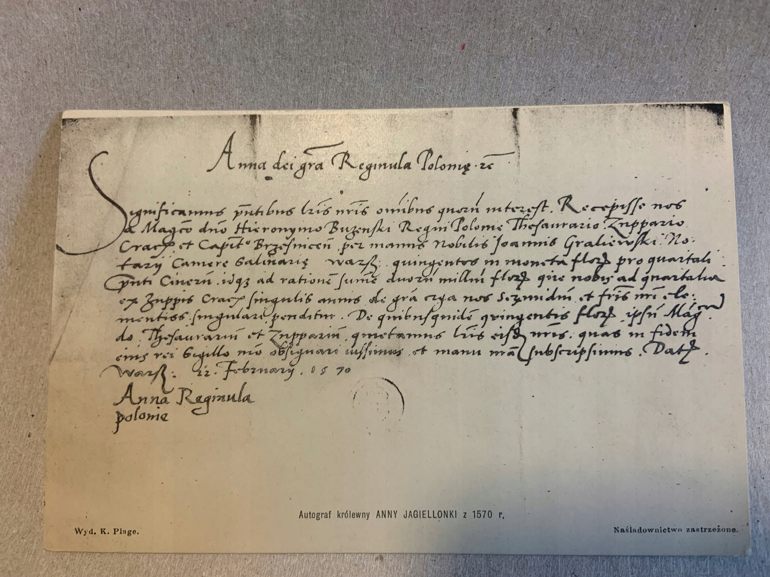АВТОГРАФ КНЯГІВНИ АННИ ЯГЕЛОНКОЇ З 1570 ЛИСТІВКИ