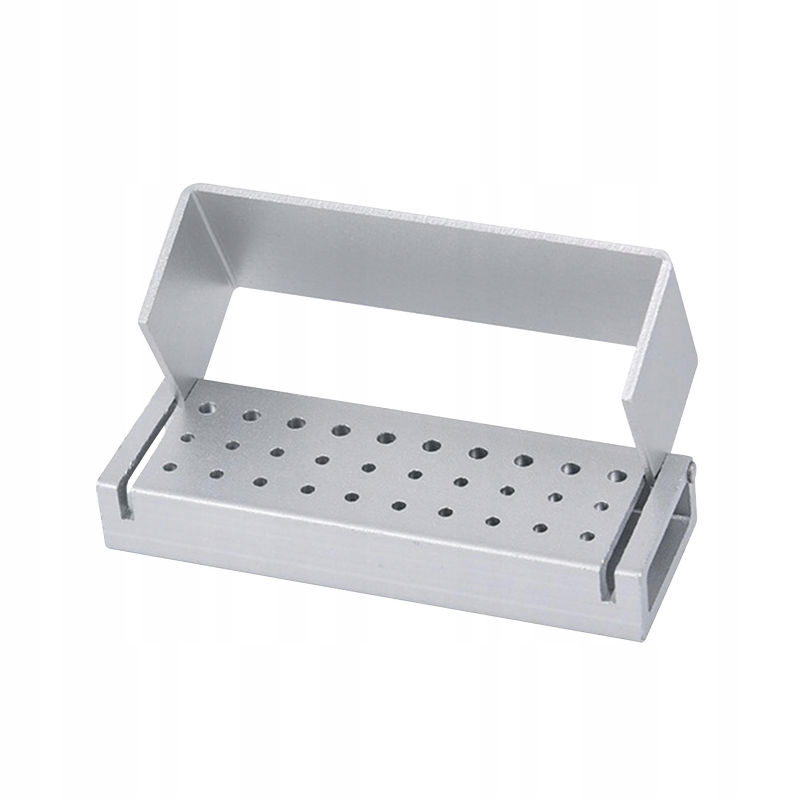 Тримач свердла на 30 отворів, автоклавований, з відкритою кришкою. Твердий органайзер для дрилів, срібний
