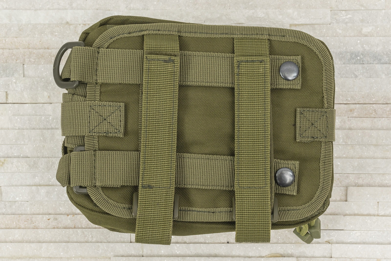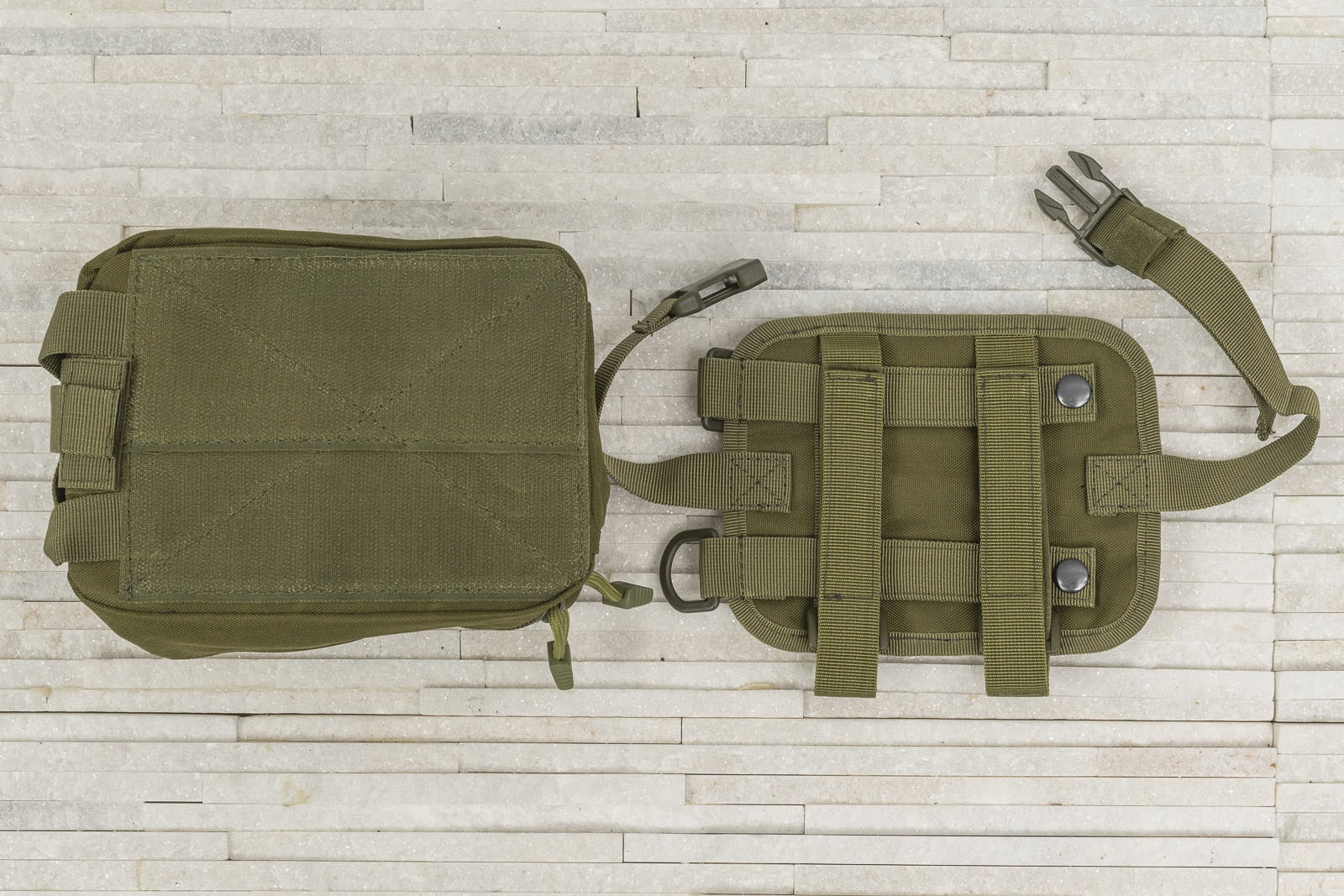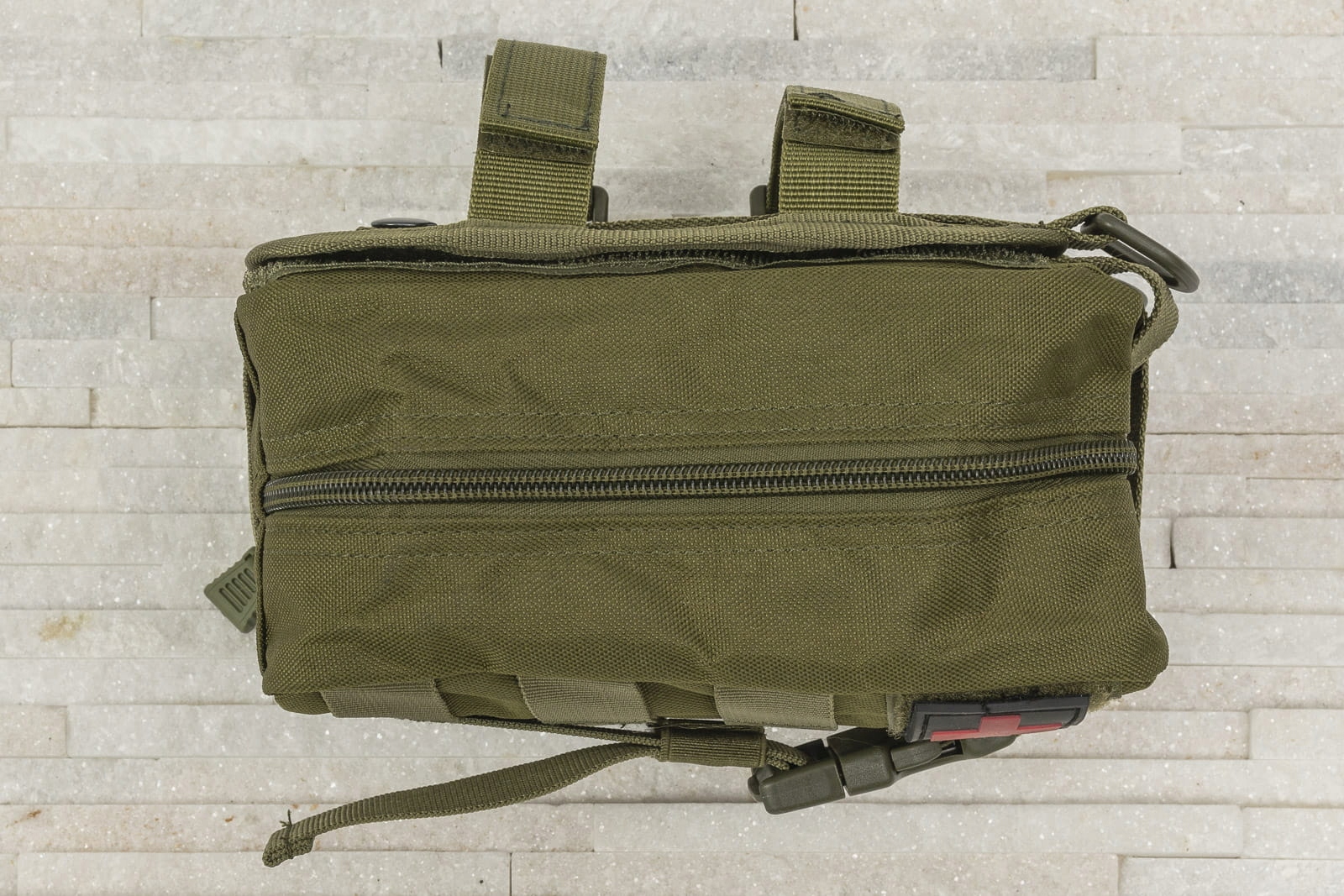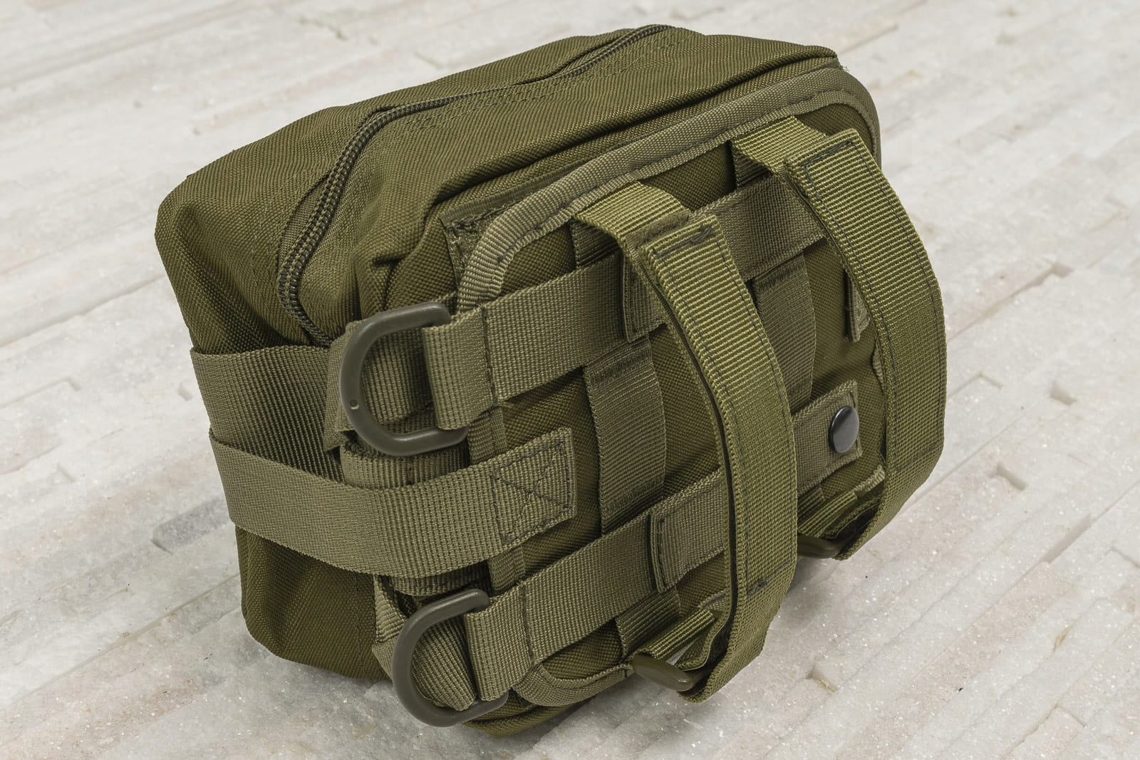 Аптечка оснащена системою кріплення MOLLE, яку можна знайти практично на кожному військовому рюкзаку чи сумці, що нагадує про військове походження Wrangler. Кріпиться надзвичайно просто, просто протягніть спеціальні ремені з кліпсами на сумках через ремені в рюкзаку/сідельній сумці. Система MOLLE гарантує, що аптечка та речі, що зберігаються в ній, не впадуть навіть під час їзди по складній місцевості. Аптечка стане ідеальним доповненням до наших органайзерів. Завдяки знімному стегновому ременю аптечку також можна носити з собою в будь-якій ситуації.