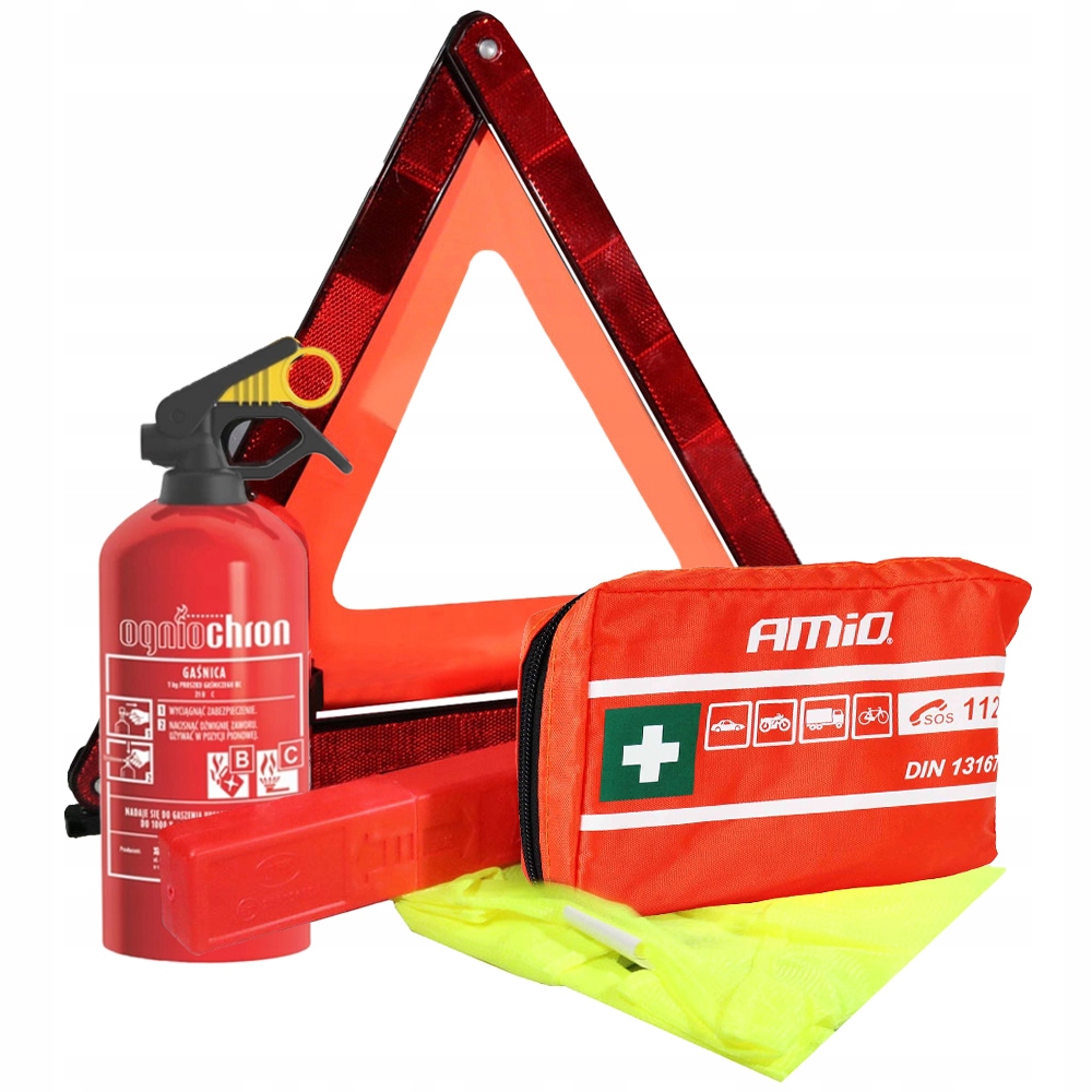 Автомобільна аптечка, що складається з аптечки, вогнегасника, світловідбиваючого жилета та трикутника попередження, є обов’язковою частиною вашого автомобіля під час подорожі як Польщею, так і Європою. Завдяки йому ви легко охороните місце зіткнення чи поломки, а також подбаєте про власну безпеку як під час паркування, так і при наданні першої допомоги. Усі елементи набору відповідають європейським стандартам і дозволам, що дозволяє використовувати їх у всіх країнах Європи.