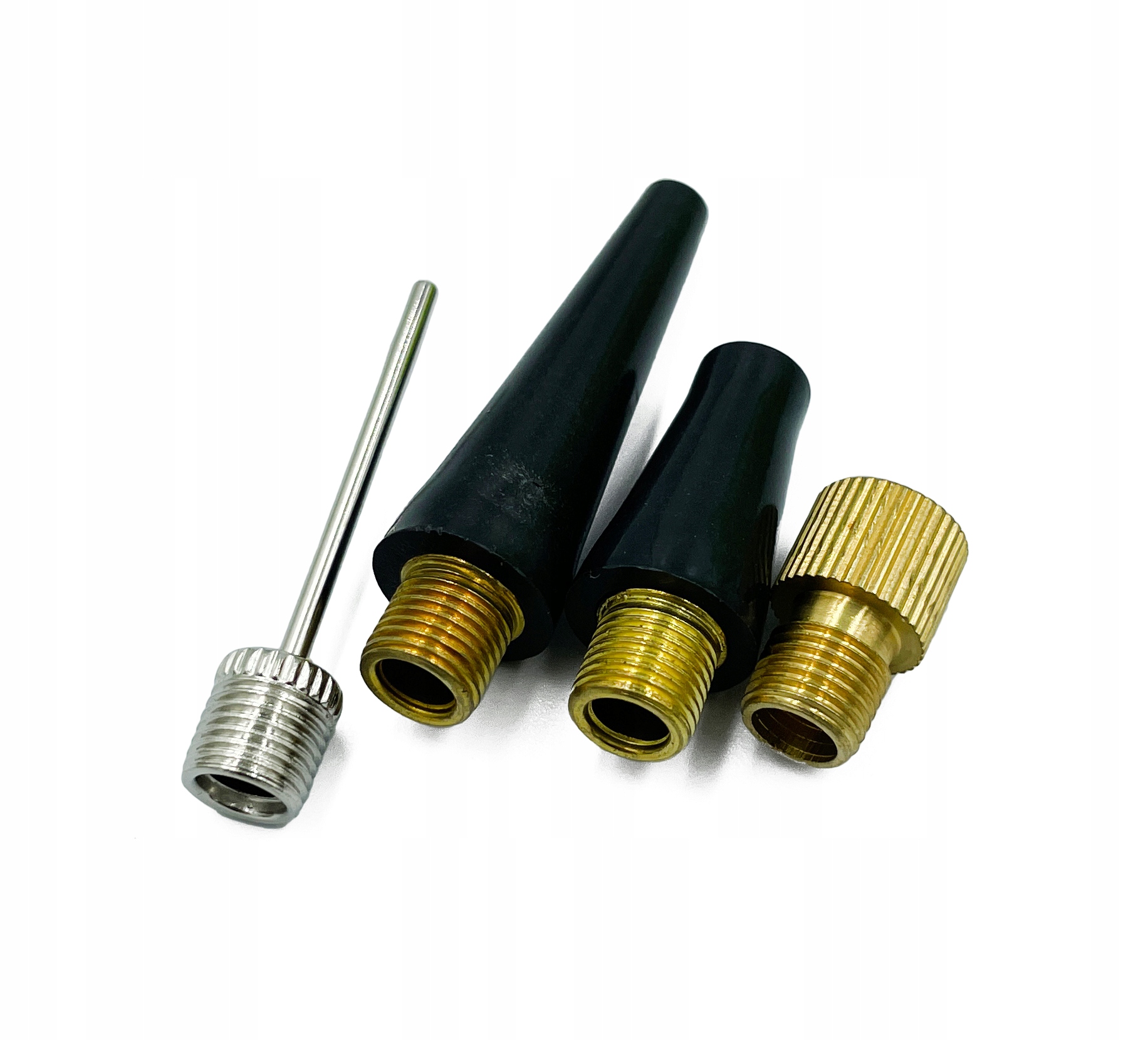 У набір входять різні перехідники, які дозволяють підключати до різних типів клапанів, що робить компресор універсальним інструментом для накачування автомобільних, мотоциклетних, велосипедних шин та інших речей.