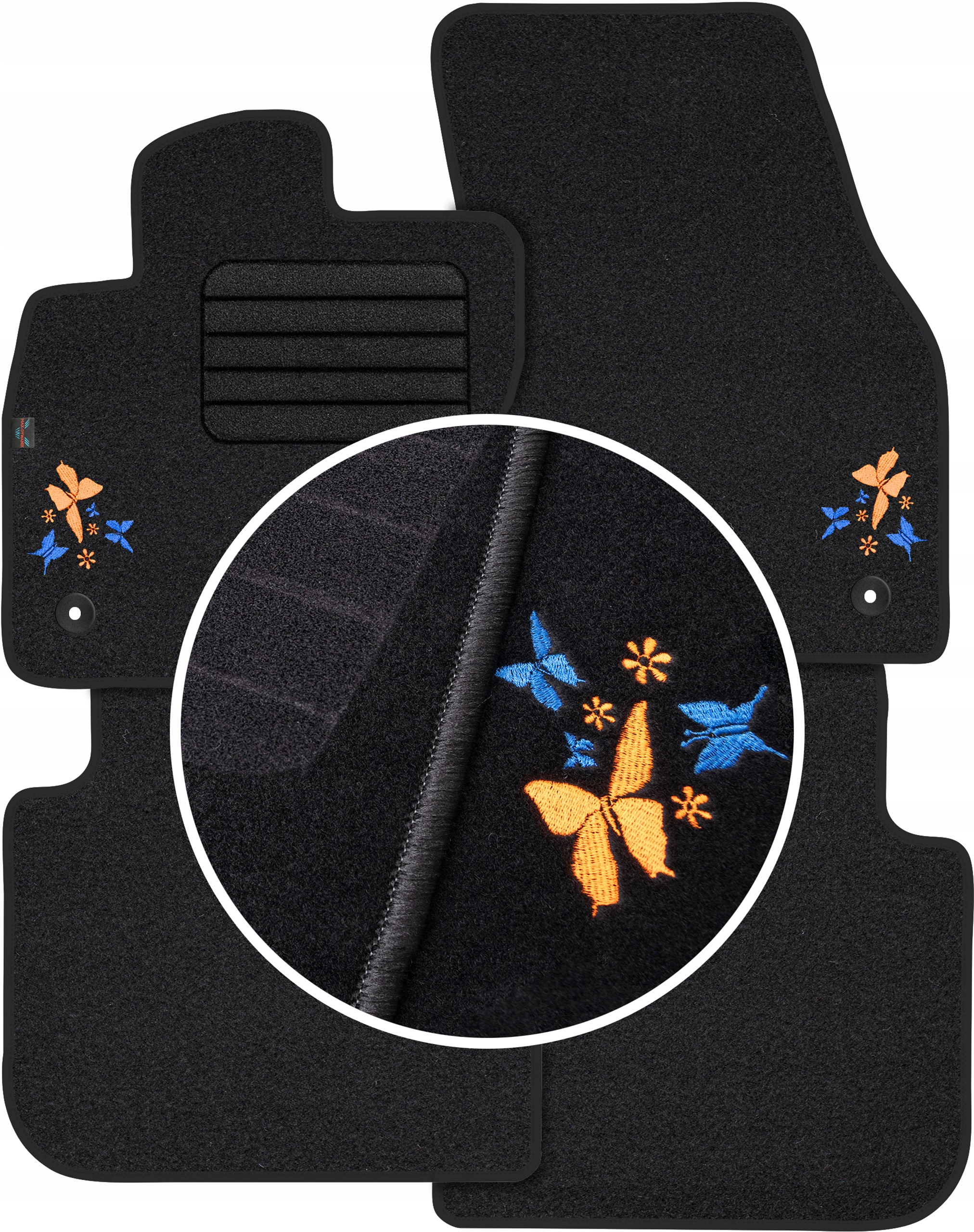 Чорний 950, чорна пряжа, синя та помаранчева вишивка - МЕТЕЛИКИ -, встановлені стопори, (ПІДІГРІВАНЕ АРМУВАННЯ)