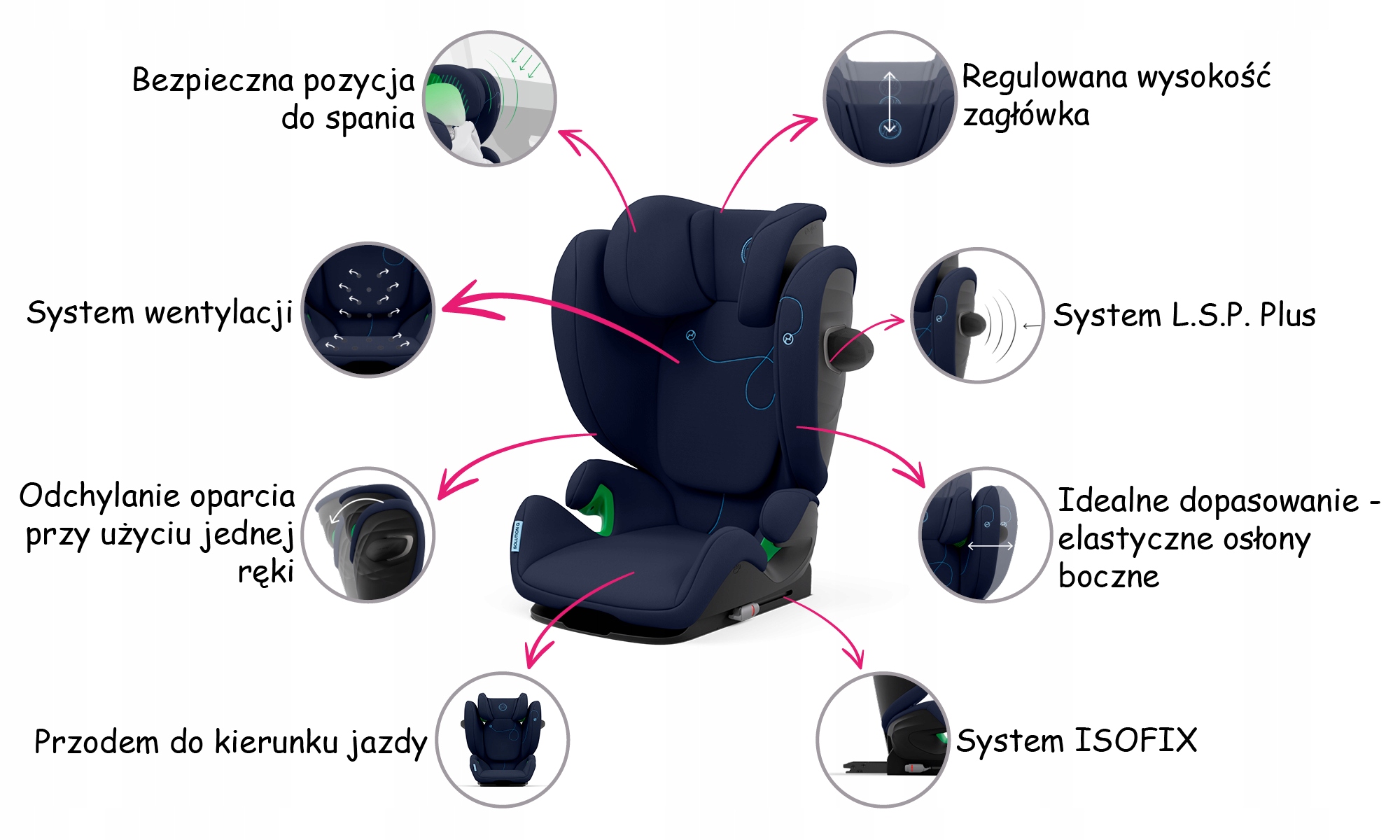 Cybex Solution G i-Fix — ще одне сидіння цього німецького бренду, яке відповідає припущенням вищого стандарту UN R-129/03 (i-Size) з останньої групи продуктів. Він призначений для дітей віком приблизно від 3 до 12 років, зріст яких становить від 100 см до 150 см.