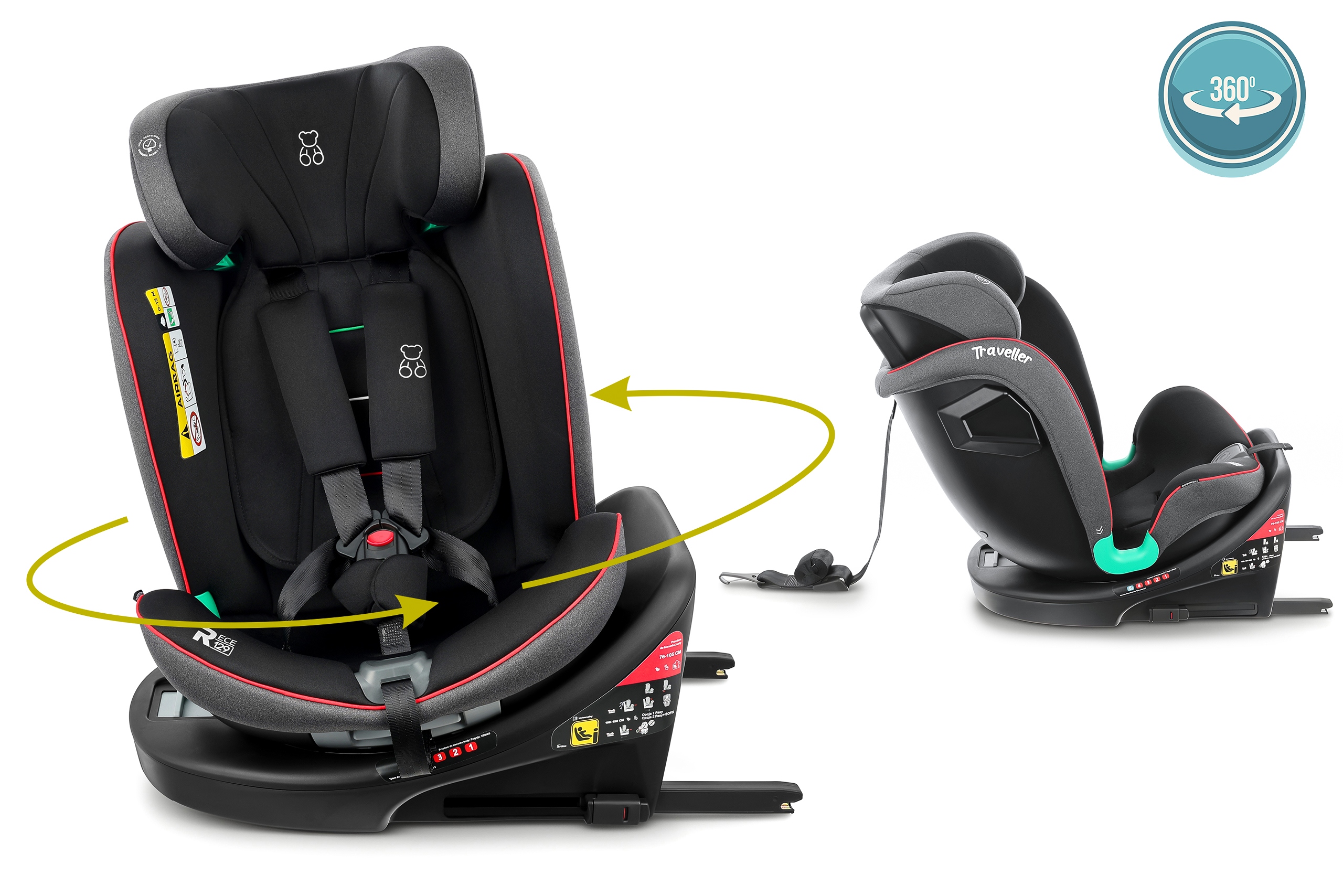 Сертифіковане автокрісло TRAVELER, що відповідає останньому дозволу i-Size для дитини зростом від 40 до 150 см. Сидіння оснащене сидінням, що обертається на 360°, і кріпленням ISOFIX + Top Tether.