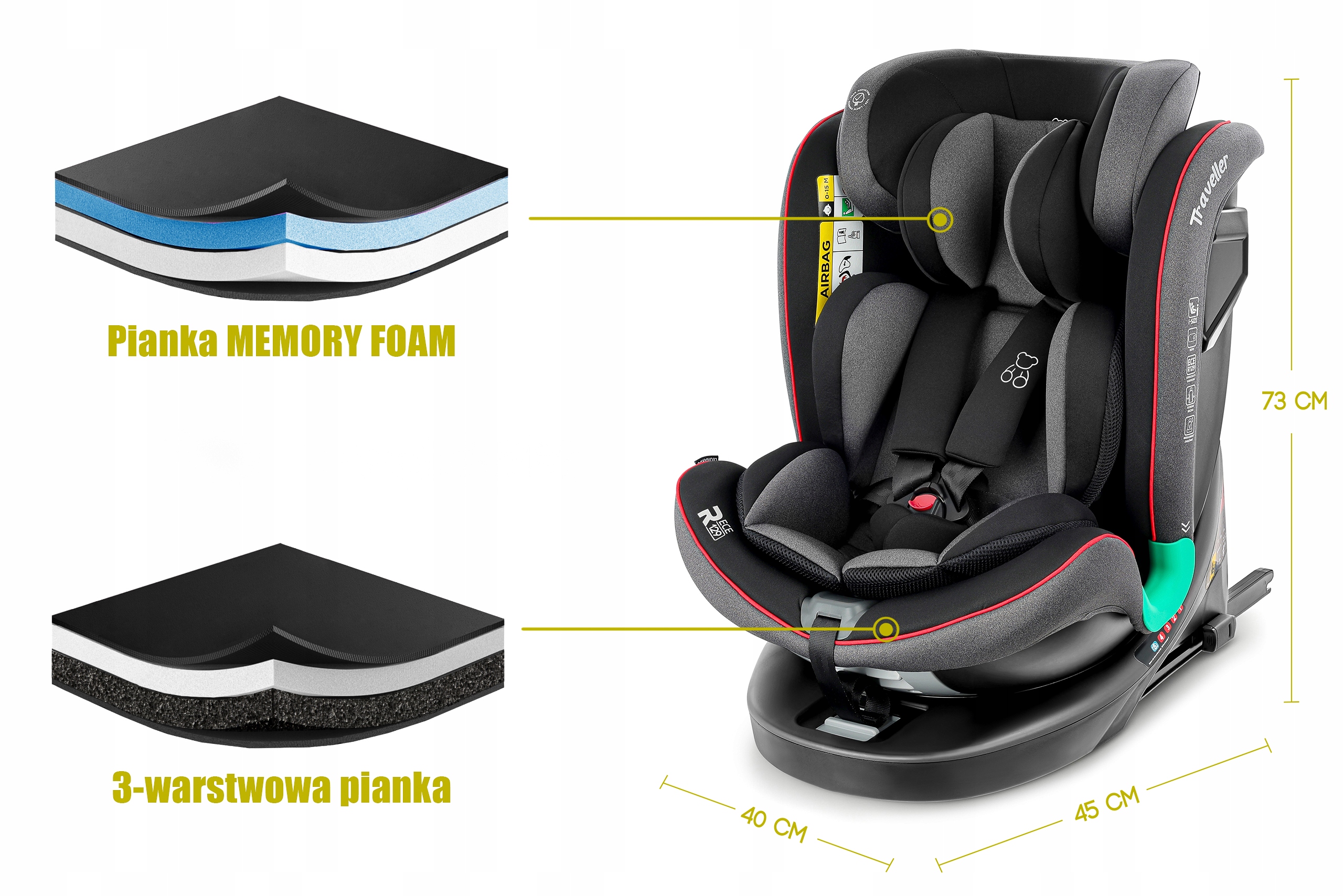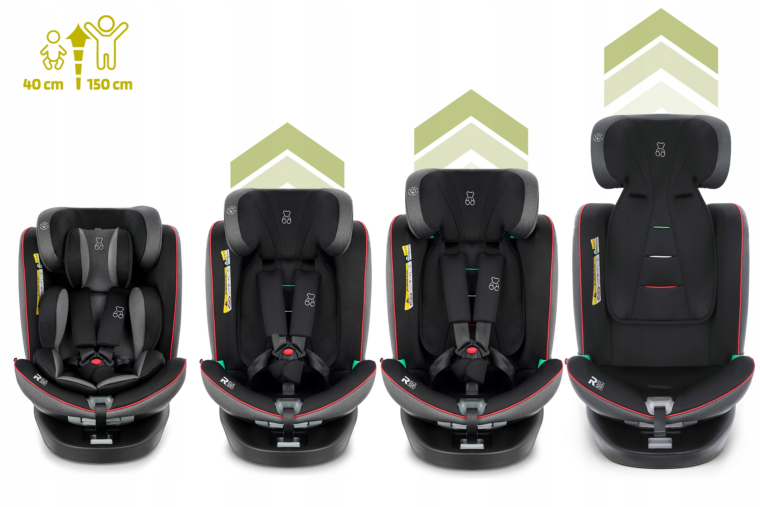 Сертифіковане автокрісло призначене для дітей зростом 40-150 см. Його може використовувати дитина зростом до 150 см, тобто приблизно до 12 років. Сидіння можна встановити обличчям вперед або назад, залежно від ваших потреб та безпеки дитини. Сидіння має кріплення ISOFIX + Top Tether і 4-ступеневу систему регулювання висоти підголівника. Завдяки використанню спеціальної знімної вставки, яка відповідає за правильне положення дітей, які ще не вміють самостійно сидіти, крісло «росте» разом з нашою дитиною від народження до 12 років. Сидіння оснащене сидінням, що обертається 360°.