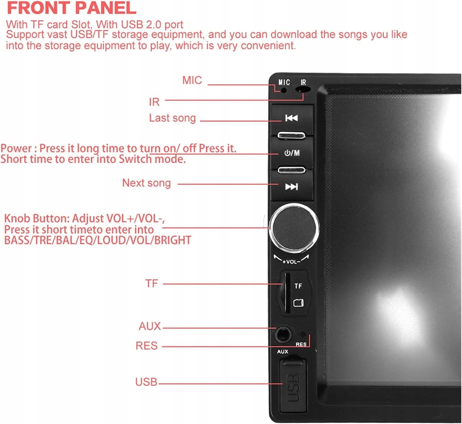 Низькі та високі частоти, функція L & RchannelStabillauxinФункція RearView Camera.