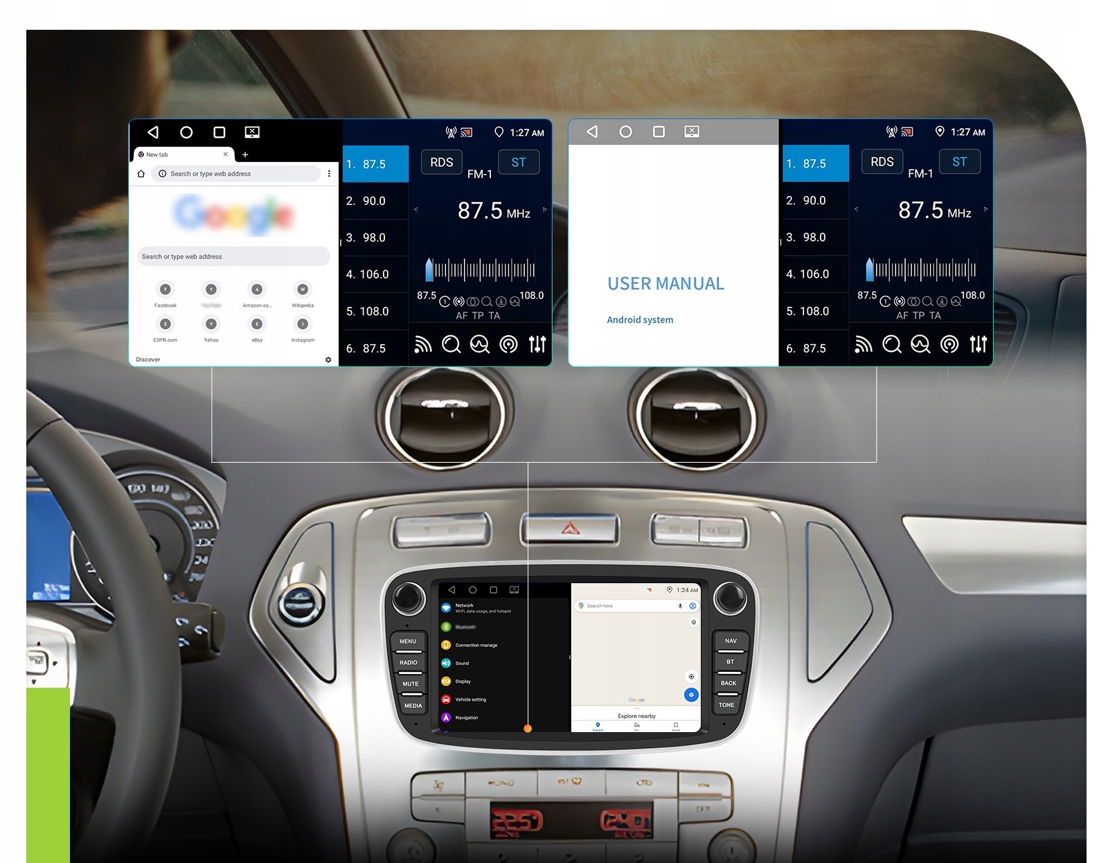 ⭐️Ви можете легко та швидко поділитися необхідним програми зі смартфона на екрані мультимедійної станції. Все, що вам потрібно зробити, це підключити свій пристрій через Bluetooth. Радіо має повну підтримку пристроїв Android та iOS!