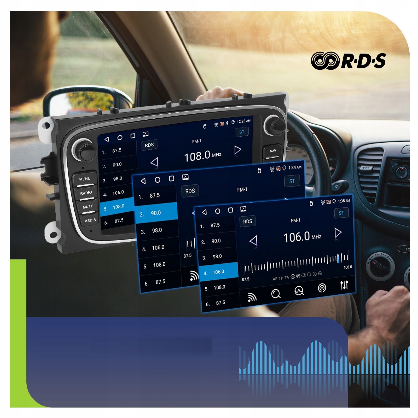 На додаток до мультимедійних аспектів, пристрій виконує свою роль класичного радіо для відтворення станцій AM / FM. Завдяки стандарту RDS ви можете приймати цифрові повідомлення та інформацію, що транслюється радіостанціями. Тепер на екрані відображатиметься поточний час, назва пісні та альтернативні частоти.