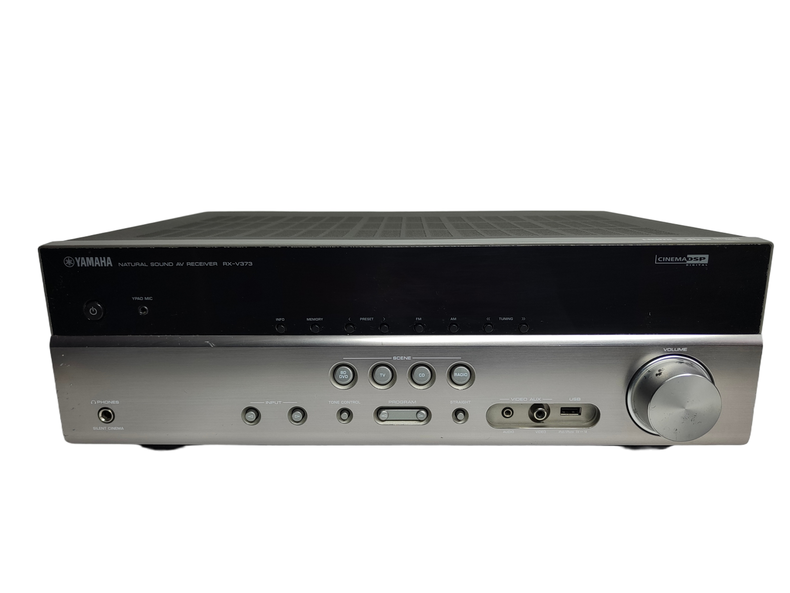 Ресивер YAMAHA RX-V373 б/в, пошкоджений. Колір чорний з сріблом. Після підключення до блоку живлення взагалі не реагує на перемикач і не включається. Візуально, як на фото, в різних місцях є подряпини, потертості, бруд тощо. Продаю без пульта як пошкоджений на ремонт чи запчастини.