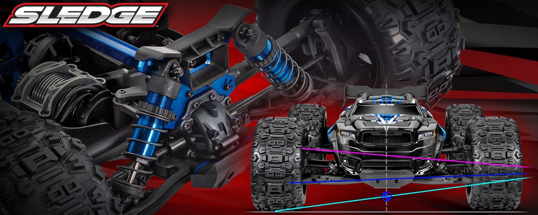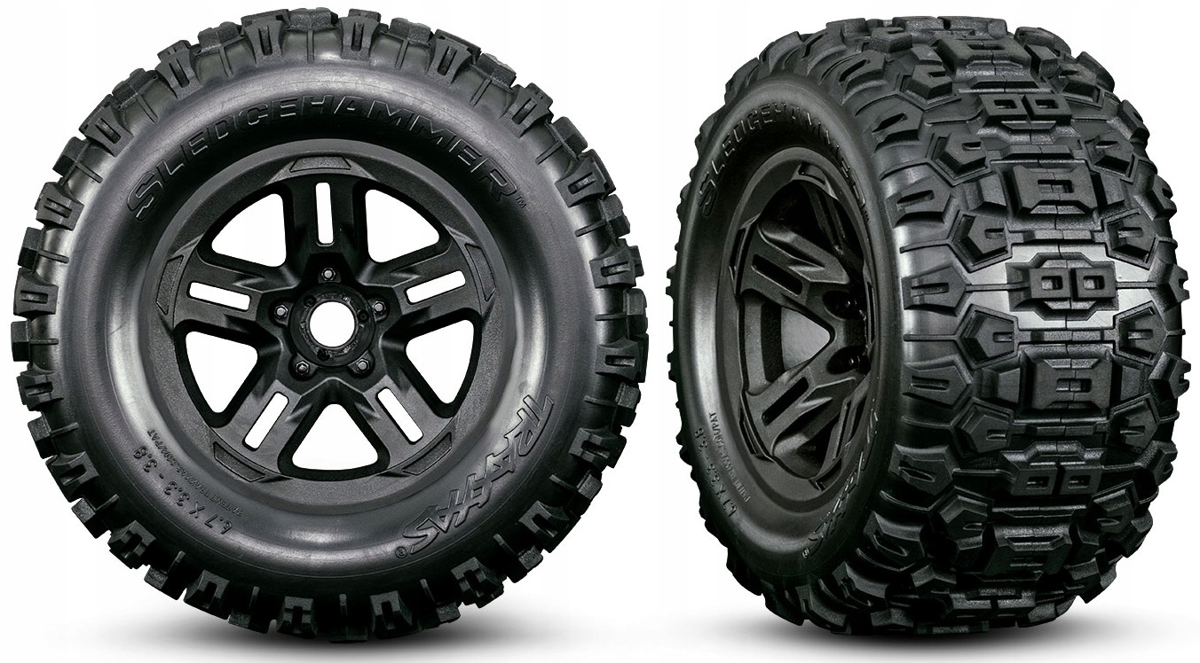 Преміальні шини Sledgehammer® є стандартним обладнанням SLEDGE. Міцні пінопластові вставки розроблені таким чином, щоб добре вписуватися всередину коліс і не швидко зношуватися. Traxxas покращив кріплення шин до ободів, щоб зменшити ризик пошкодження під час екстремального використання.