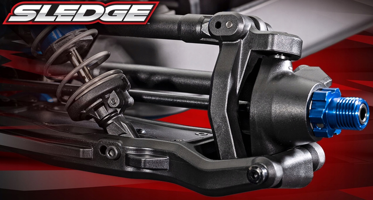 SLEDGE має повністю нову передню підвіску. Конструкція втулки дозволила інженерам Traxxas виготовляти більші та міцніші деталі, щоб забезпечити чудову довговічність і стійкість до ударів. Точність виготовлення та геометрія системи рульового керування збережені, а сталеві вставки втулки пальця мінімізують знос деталей.