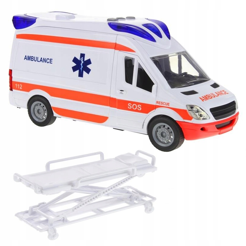 Дивовижні рятувальні машини від Madej. Швидка допомога - чудова іграшка для любителів рятувальних місій. Швидка допомога має двері в салон, що відкриваються, бокові двері, що відкриваються, багажник відкривається. Всередині багажника є місце для носилок, які входять у комплект. Ноші полегшать транспортування пораненого до лікарні. На даху є звуковий і світловий модуль, який забезпечить багато годин радісного задоволення. Просто ввімкніть сирену і дійте.