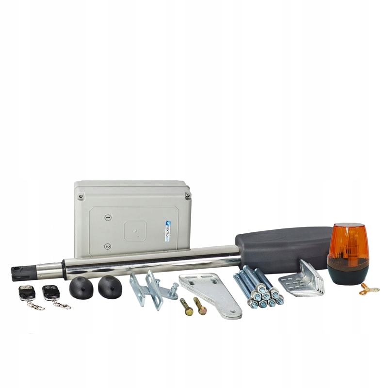 - Спеціальні кріплення з монтажними гвинтами забезпечують свободу кріплення приводів. Ми знаємо, що всі ворота різні, тому завдяки цим ручкам ми можемо вільно конфігурувати приводи на кожних воротах. До складу кріплень входять ключі для екстреного відмикання при відключенні електроенергії, відбійник для зупинки стулок воріт та монтажні втулки.