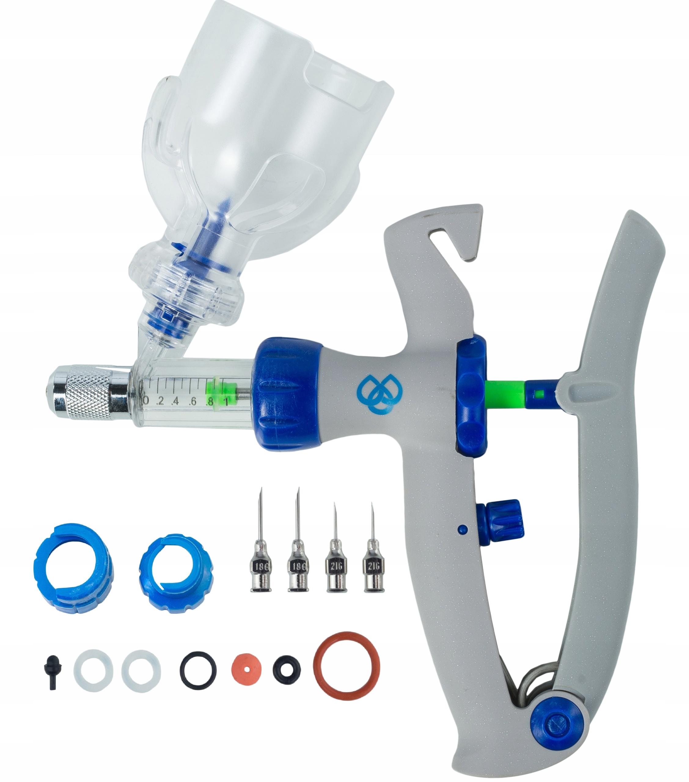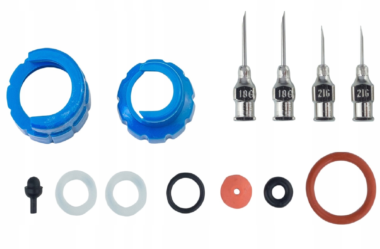 Шприц постачається з 4 голками багаторазового використання та додатковими ущільнювачами: