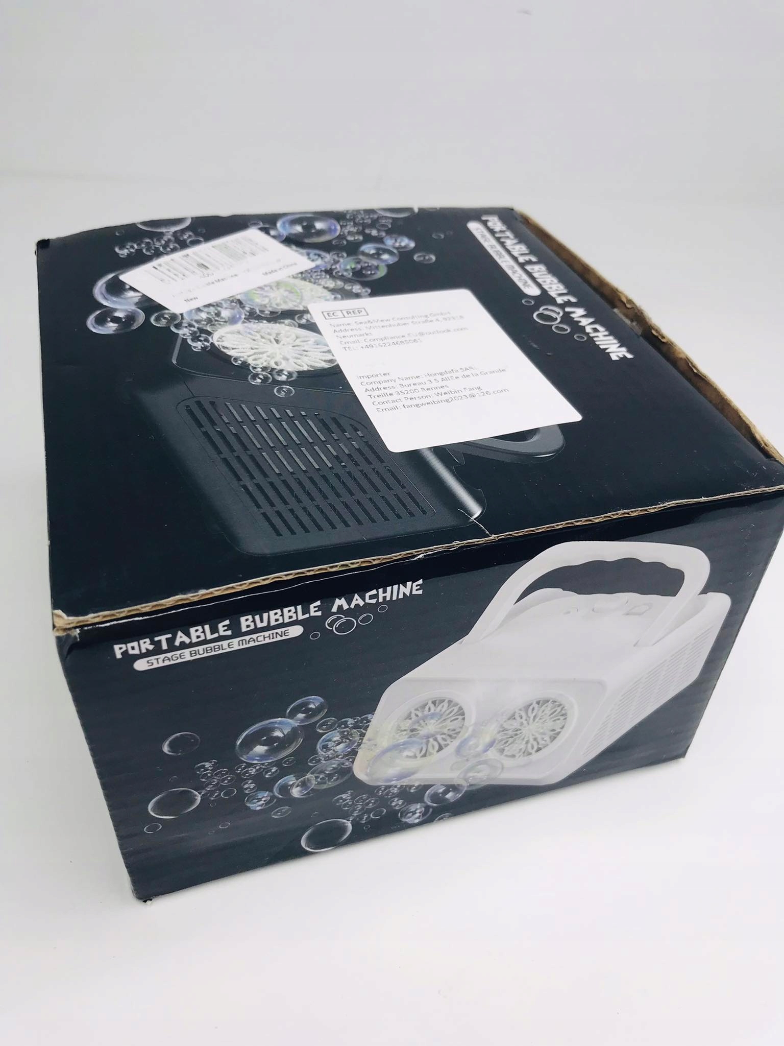 - Пляшка з бульбашками встановлена внизу. Просто наповніть резервуар бульбашковою рідиною (не входить у комплект) і натисніть кнопку живлення, щоб почати веселощі.