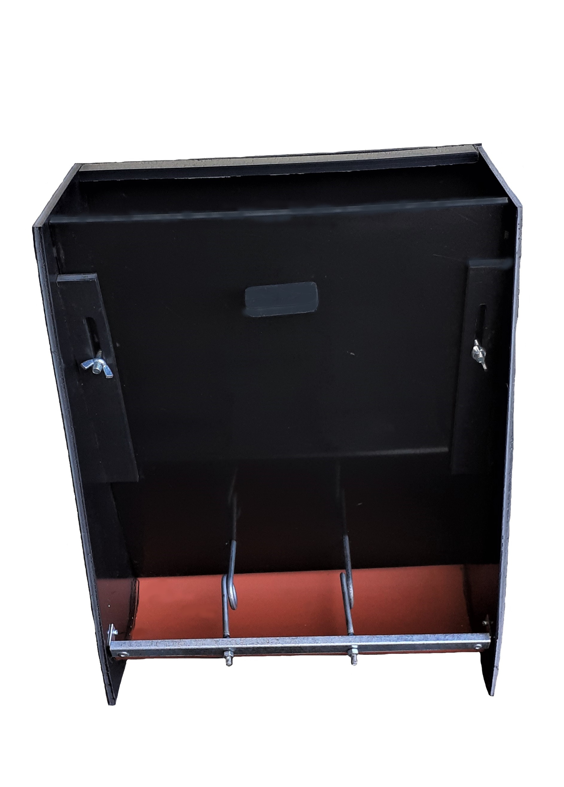 - Рухома передня панель для годування корму, закріплена за допомогою дві регульовані ручки< /li>