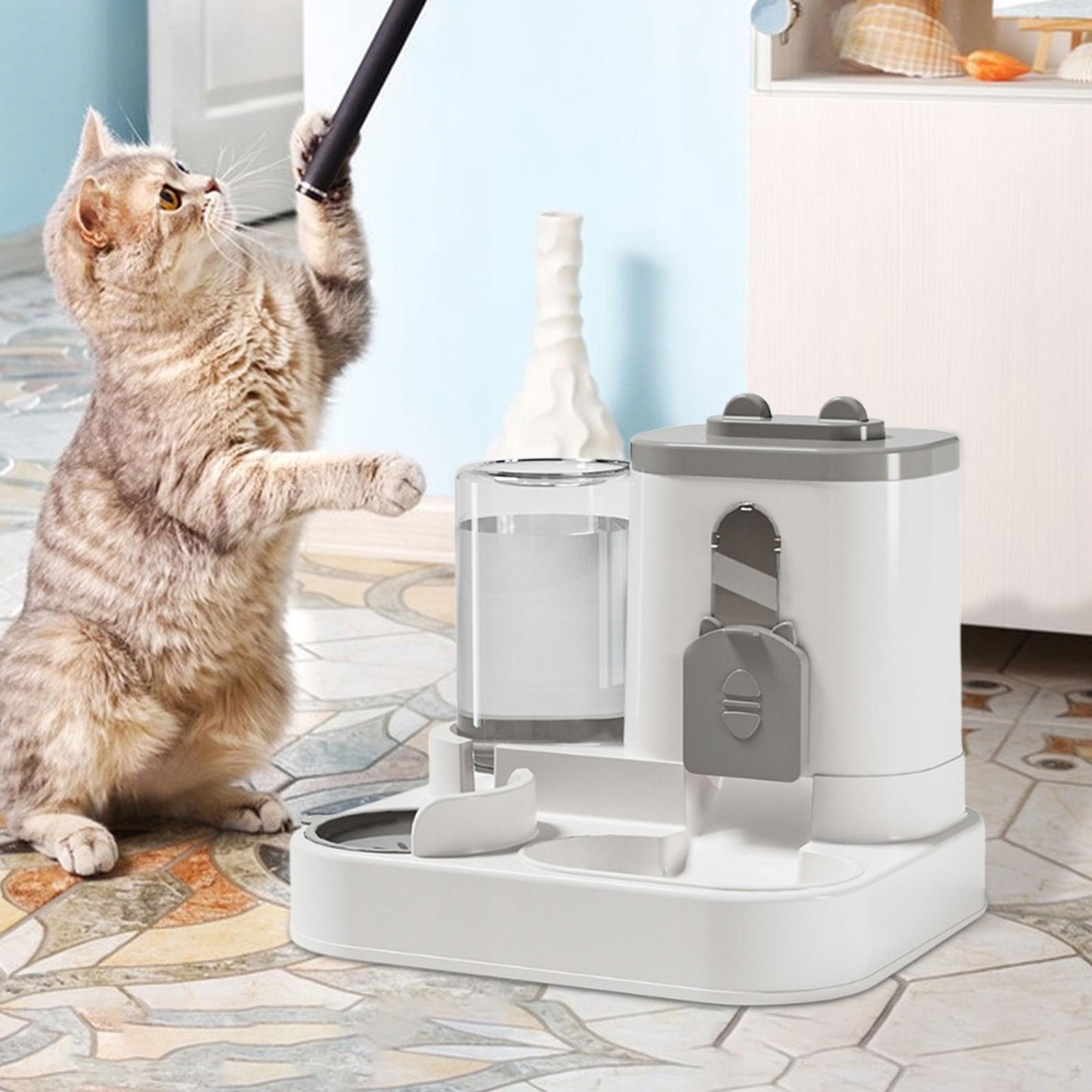 [2 в 1 водному та водному дозаторі]: Зберігання їжі 1500 мл та пляшка з водою 700 мл вашої тварини, щоб ваша тварина насолоджувалася їжею та чистою водою. Збільшення огорожі проти розпилення може ефективно запобігти зерна та бризку