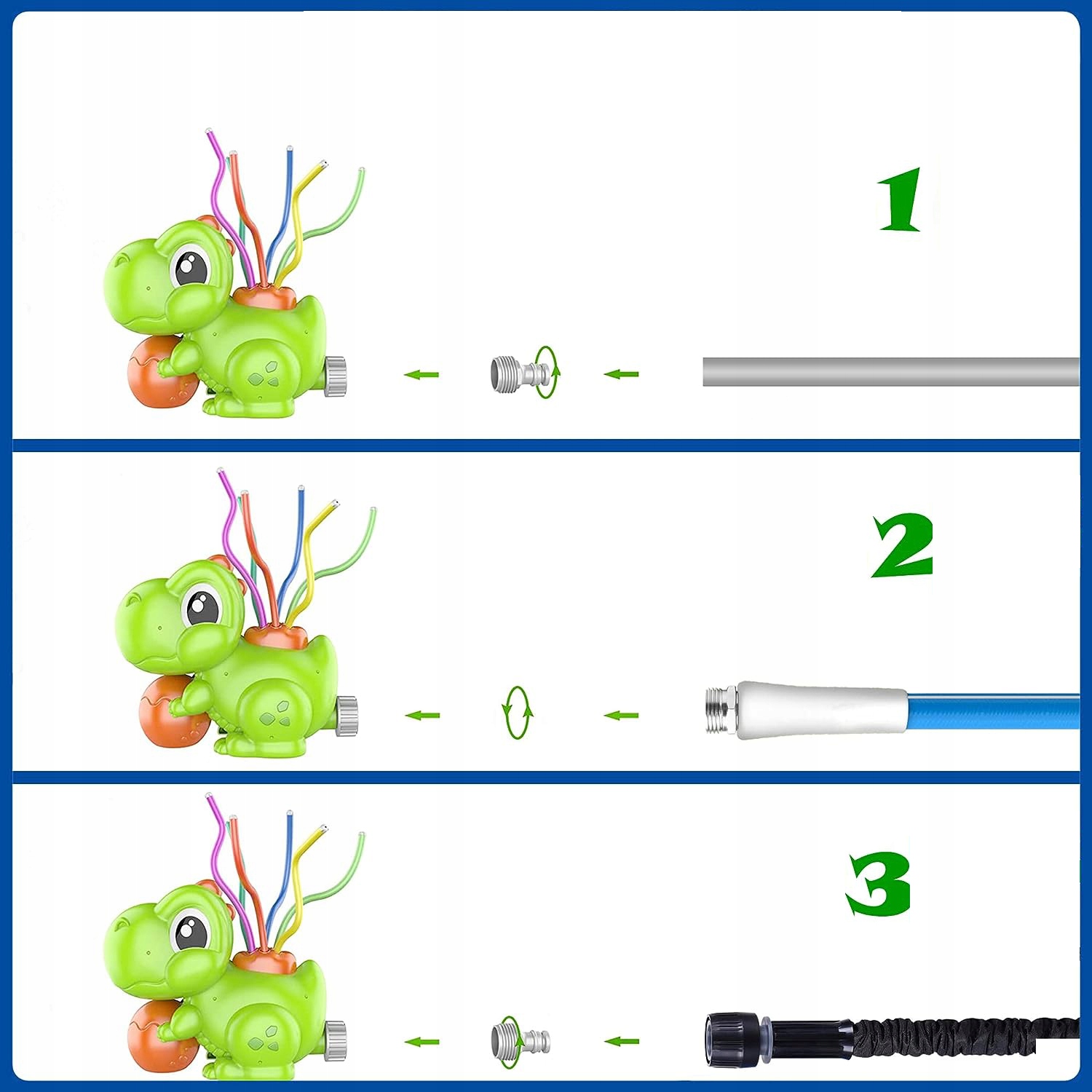 Іграшка-розпилювач води не потребує батарейок, просто послабте 6 гумових спринклерних шлангів і під’єднайте водонепроникні гумові кільця до з’єднувачів шлангів. Кольорові водопровідні труби коливаються, коли тиск води зростає.