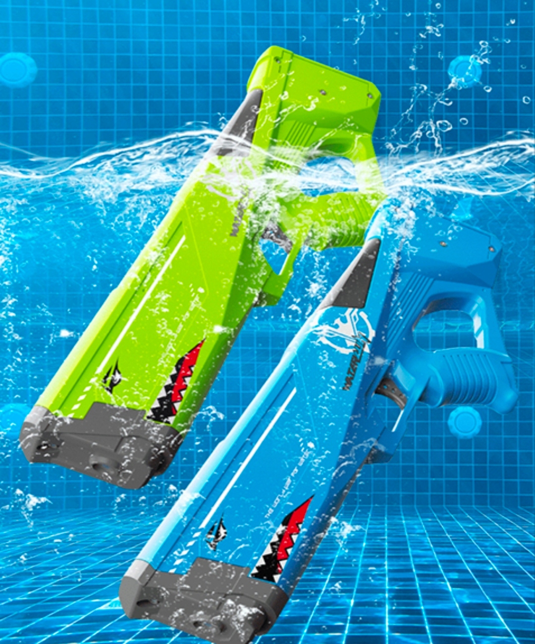 Автоматичний водяний пістолетдозволяє організувати багато цікавих ігор і битв. Гра поодинці чи змагання в групі — ідеальна ідея для фантастичного проведення часу в теплі дні.