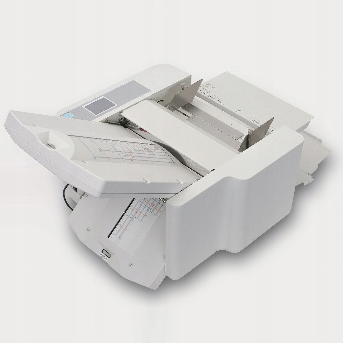 Професійна багатофункціональна автоматична фальцювальна машина. Один із найшвидших у своєму класі! Дуже простий у використанні, він має автоматичне розпізнавання розміру паперу для форматів (A3, B4, A4, B5, A5, B5) і автоматичне налаштування положення згинання за допомогою сенсорної панелі. Функція пам'яті для 36 автоматичних положень складання, які можна вибрати одним натисканням кнопки (6 типів складання х 6 розмірів паперу). Два додаткових бічних магнітних манометра з натяжними роликами для великих форматів паперу. Автоматична фрикційна система подачі паперу з трьома роликами. Потокова система розвантаження паперу, яка здійснюється за допомогою ременів і трьох викидних роликів, що висуваються вручну. Лічилка (додавання чи віднімання). Зручний тестовий режим: 2 аркуші можна попередньо скласти для тестування. Автоматичне відключення, якщо верхня кришка відкрита. Автоматична зупинка після виконання завдання, додатково підтверджена оптичним і звуковим сигналом. Автоматичне виявлення застрягань і помилок з детальним описом на сенсорному екрані. Складні ролики допомагають обслуговувати та чистити пристрій.