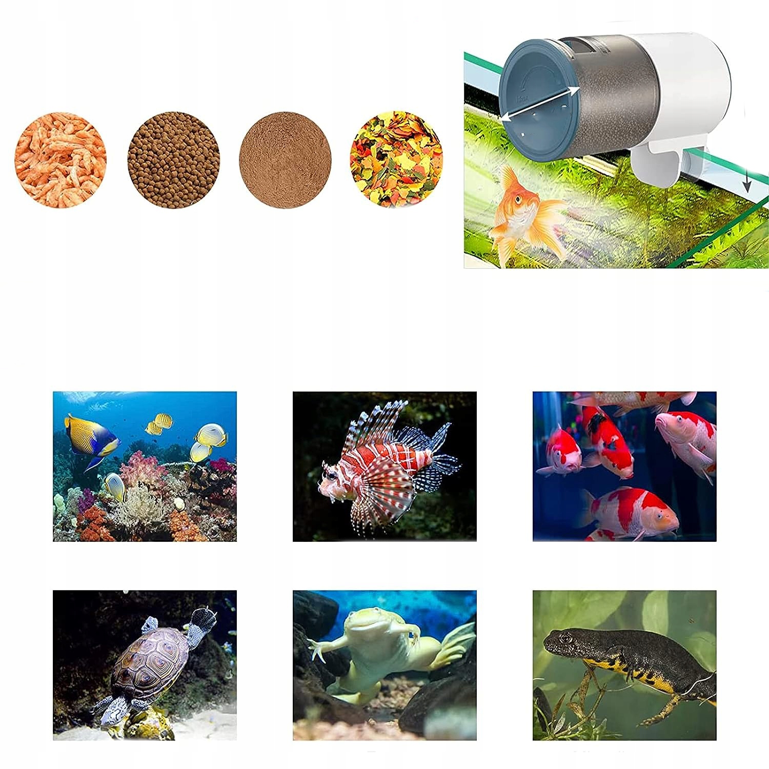 ✅【Багатофункціональна】 Автоматична годівниця для акваріума підходить для більшості видів корму для риб, наприклад пластівці, гранули, порошки та смужки; підходить для акваріумів і акваріумів, ним можна годувати навіть більшість домашніх рибок, черепах, саламандр і жаб