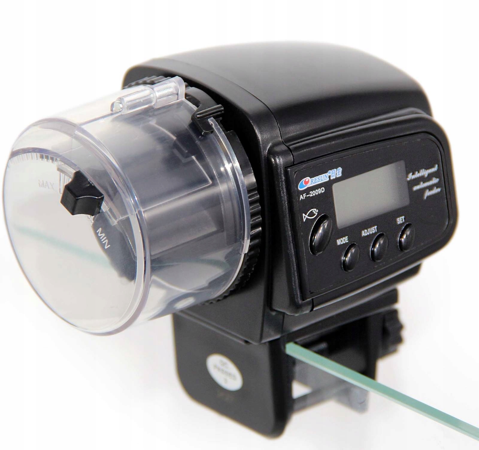 Автоматична годівниця для акваріумних риб Resun AF-2009D. Дозволяє встановити до 4 годувань на день. Дозволяє використовувати їжу в пластівцях або гранулах. Має РК-дисплей. Живлення від батареї (не входить в комплект). Кріплення до скла товщиною до 15 мм або в кришці.