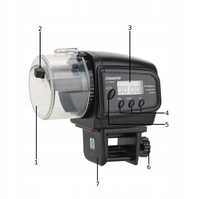 Годівниця підходить для сухих кормів: пластівців, гранул і навіть сушених комах. Годівницю можна годувати 4 рази на день, що робить її придатною навіть для найвибагливіших риб і розводників.