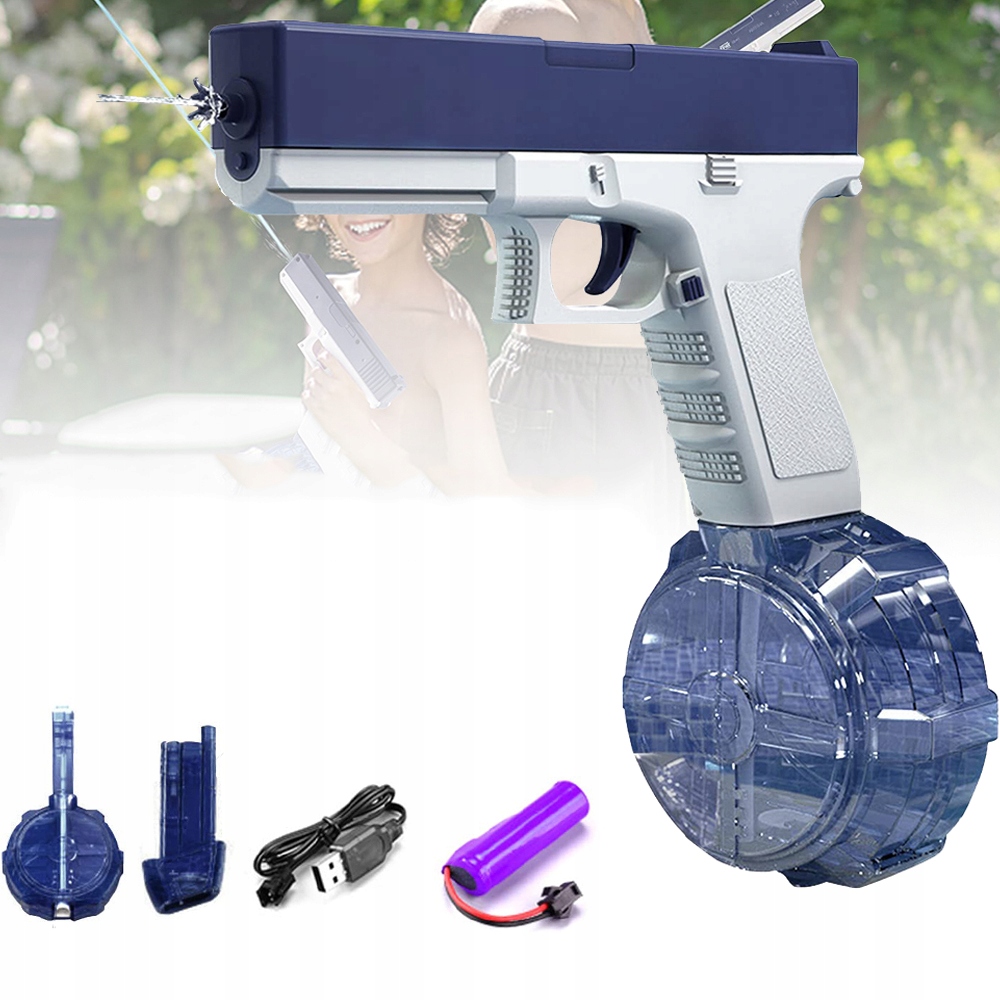 Електрична водна пістолет з водонепроникною конструкцією та водонепроникною батареєю, може бути заряджена через USB і дозволяє безперервно використовувати протягом 50 хвилин. Ви можете забезпечити собі або своїм друзям захоплюючу битву за водні пістолети!