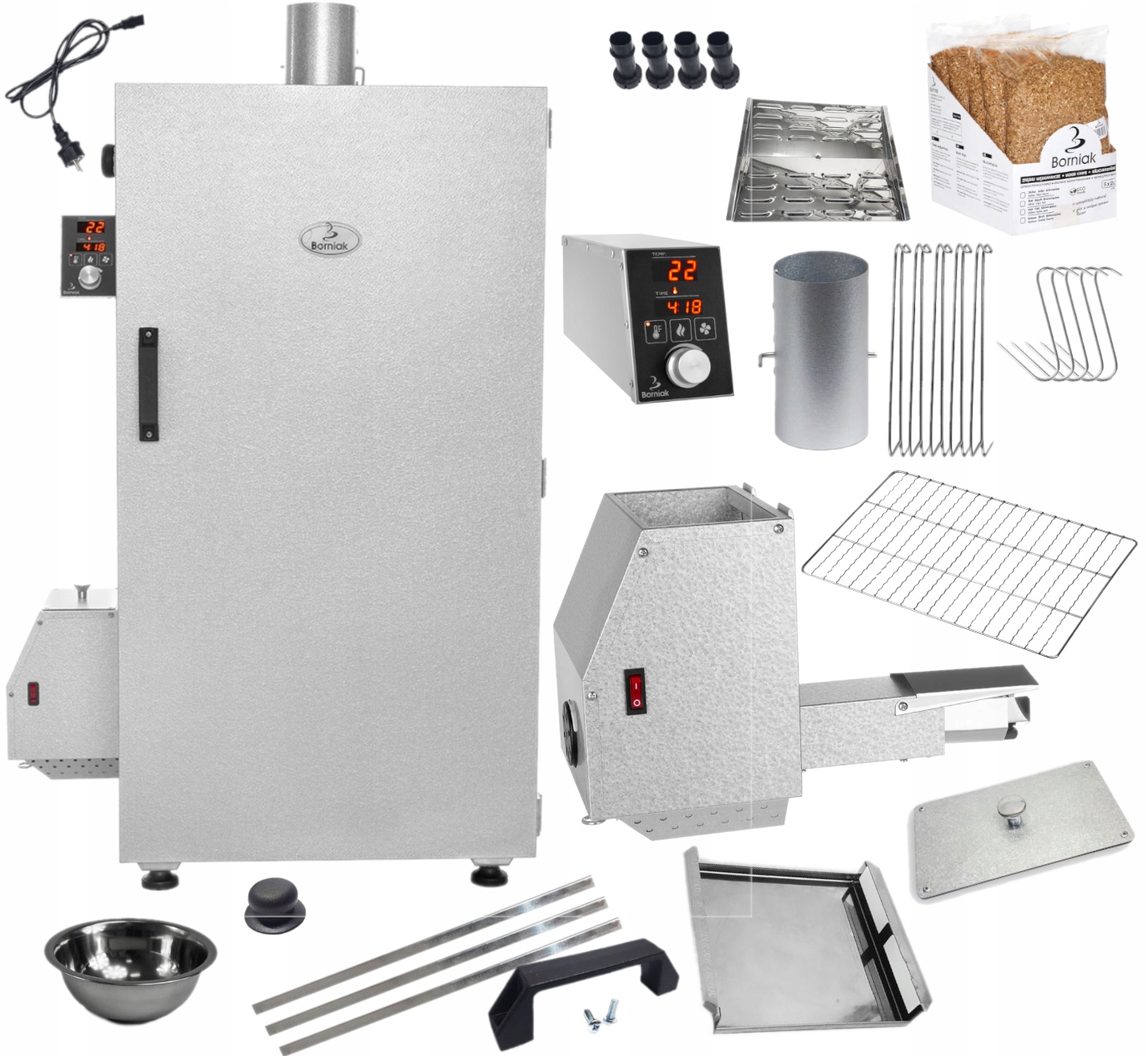 Коптильня оснащена контролером Borniak Timer, який забезпечує швидке та легке керування приладом. Дисплей, розташований зліва, дозволяє контролювати температуру в процесі копчення та інформує про час роботи. Крім того, контролер дозволяє встановлювати час окремих функцій, наприклад, нагріву, димоутворення та сушіння.