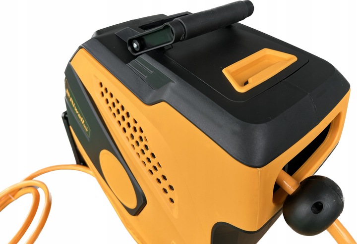 - У комплекті шланг 25 + 2 м. Крім того, шланг має швидкі з'єднувачі. Котушка зі шлангом важить всього 10,3 кг.